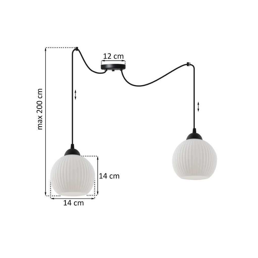 Závěsné svítidlo Riffle Round Spider, 2x bílé skleněné stínítko, b