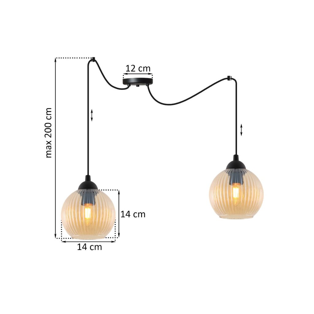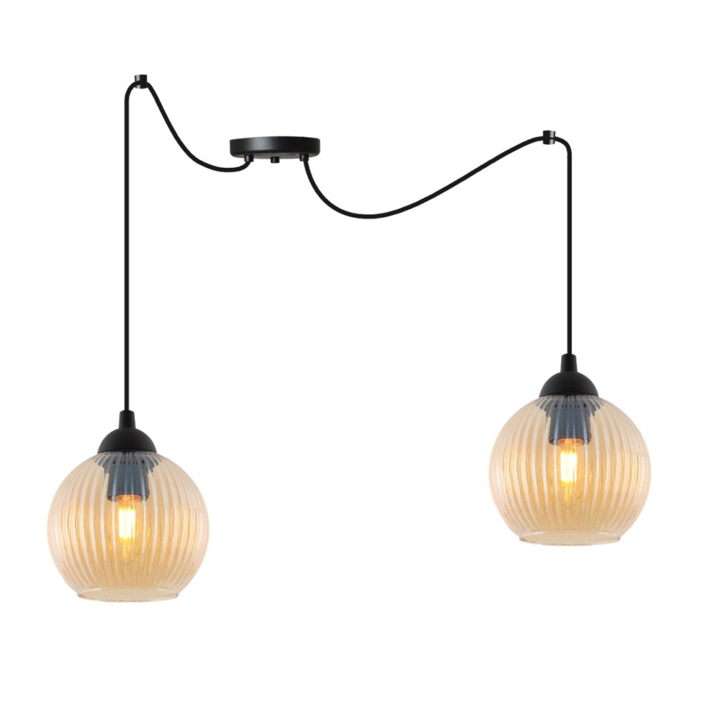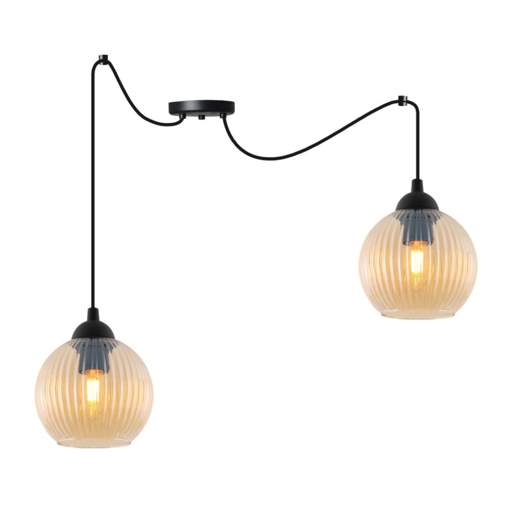 Závěsné svítidlo Riffle Round Spider, 2x medové skleněné stínítko