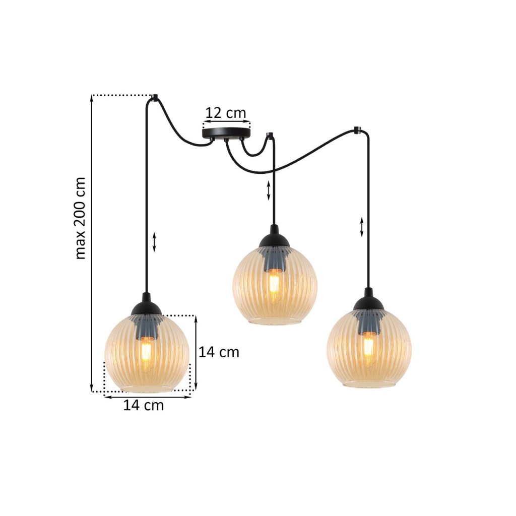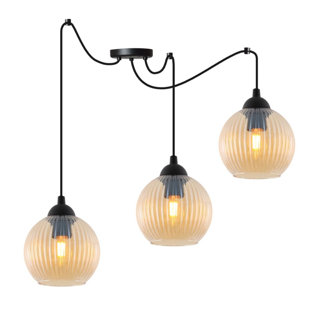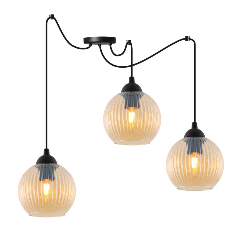 Závěsné svítidlo Riffle Round Spider, 3x medové skleněné stínítko