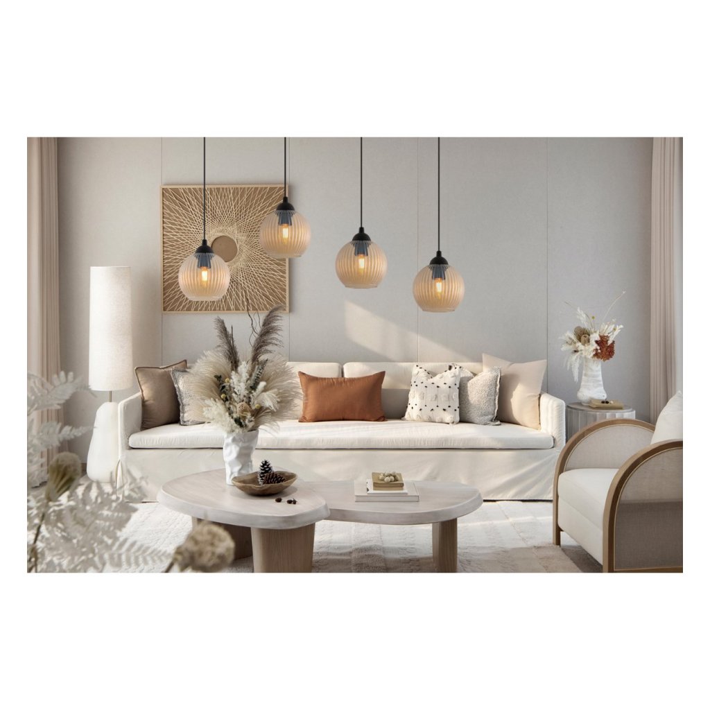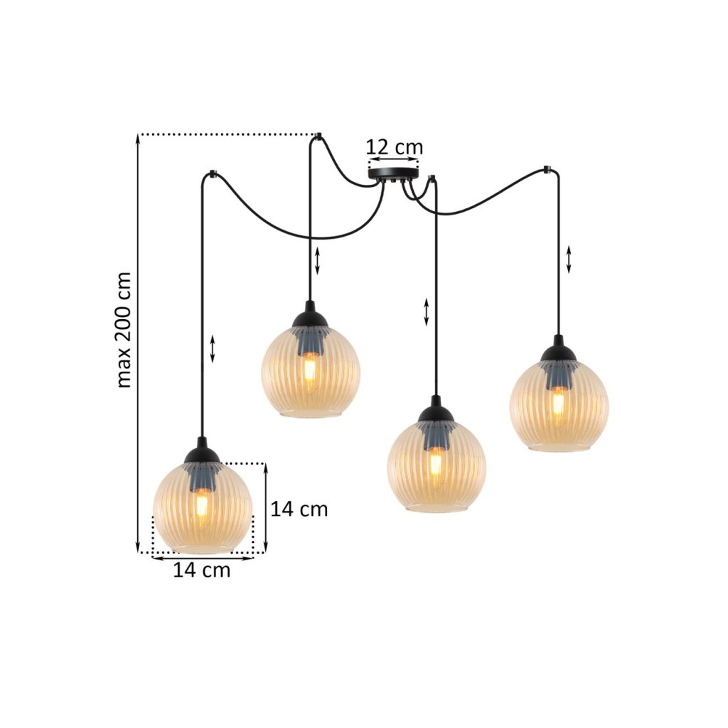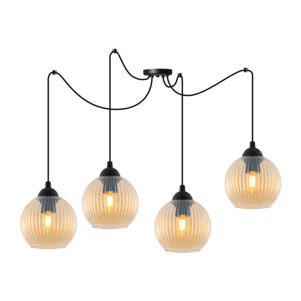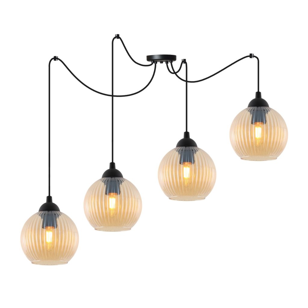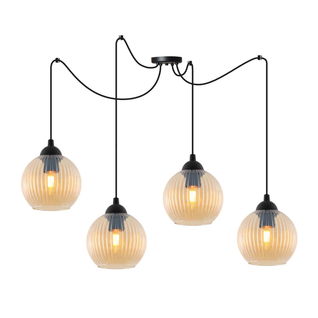 Závěsné svítidlo Riffle Round Spider, 4x medové skleněné stínítko