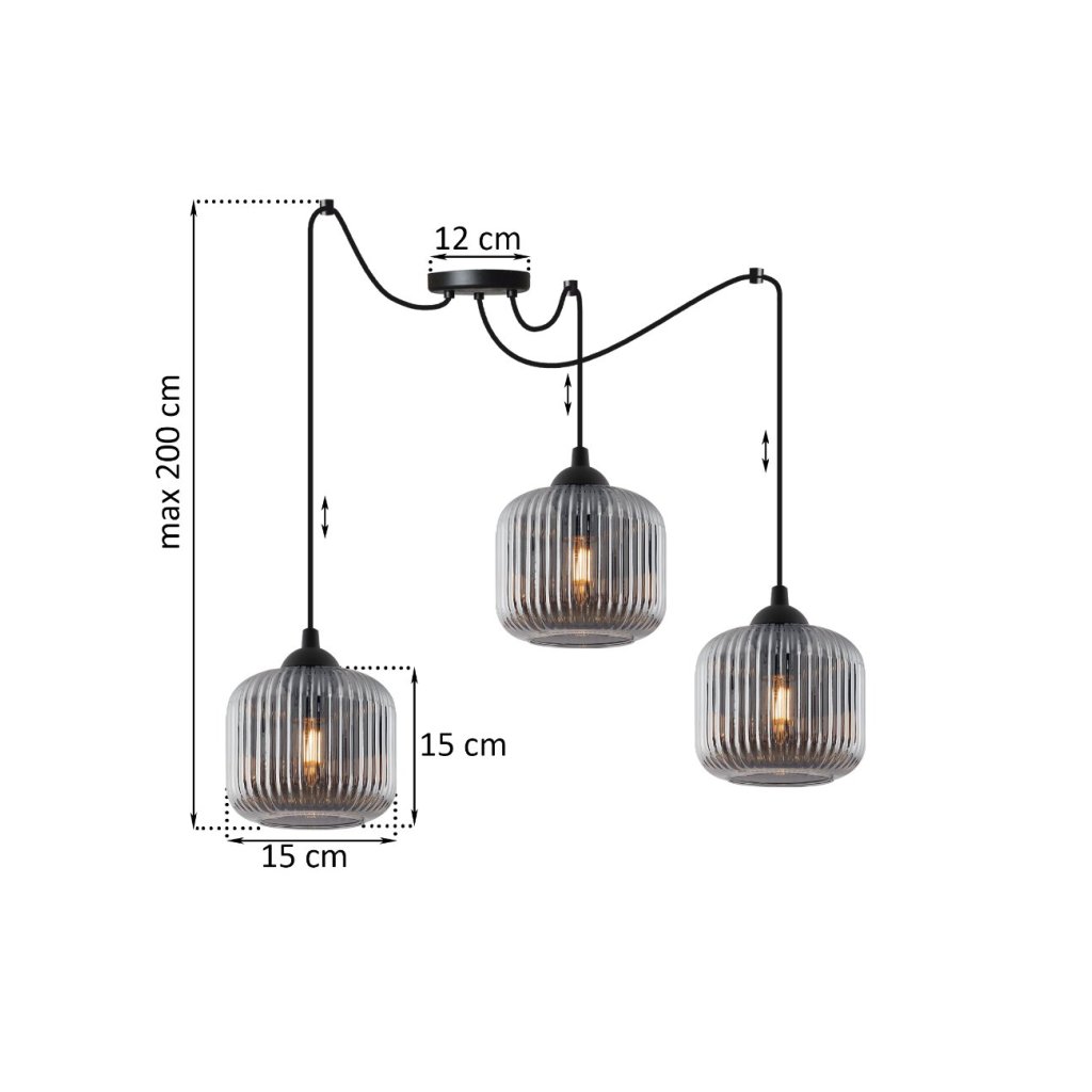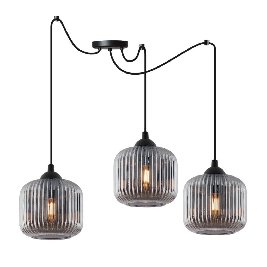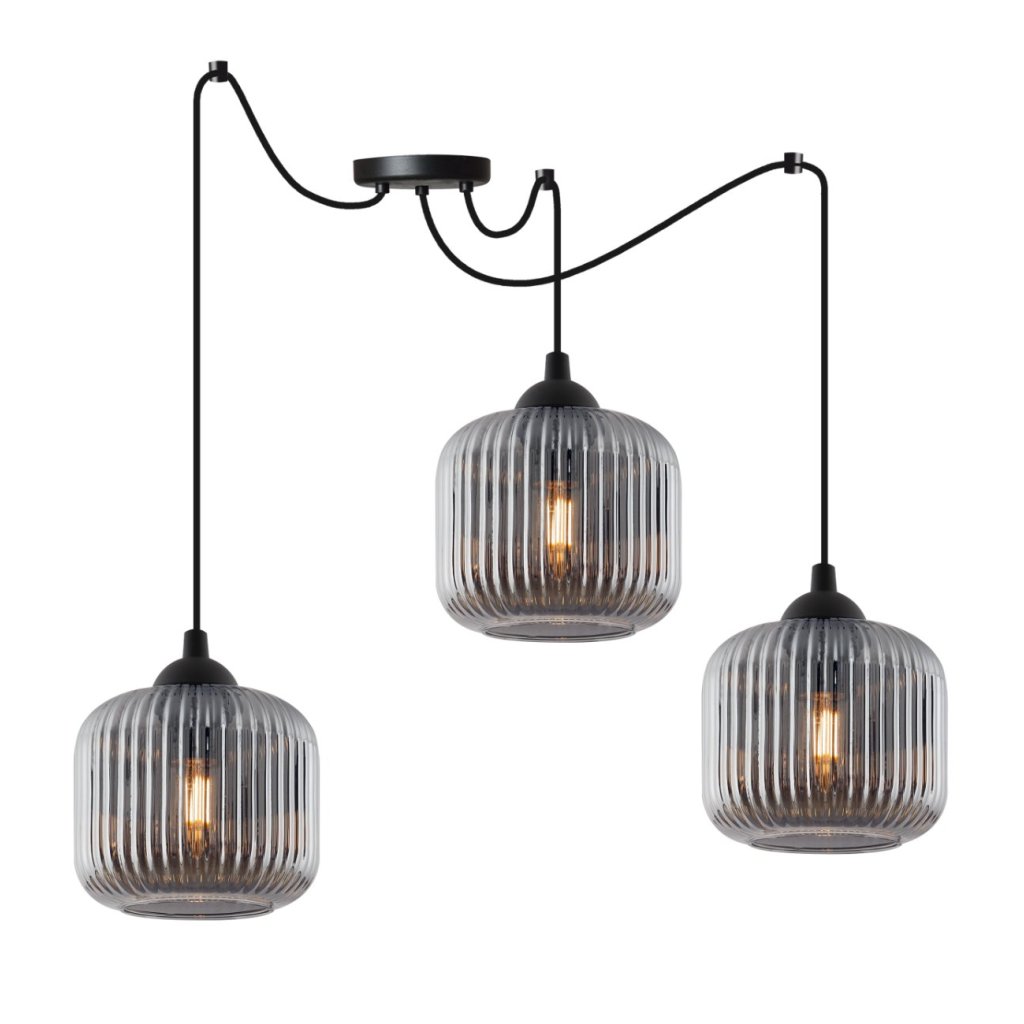 Závěsné svítidlo Riffle Spider, 3x grafitové skleněné stínítko