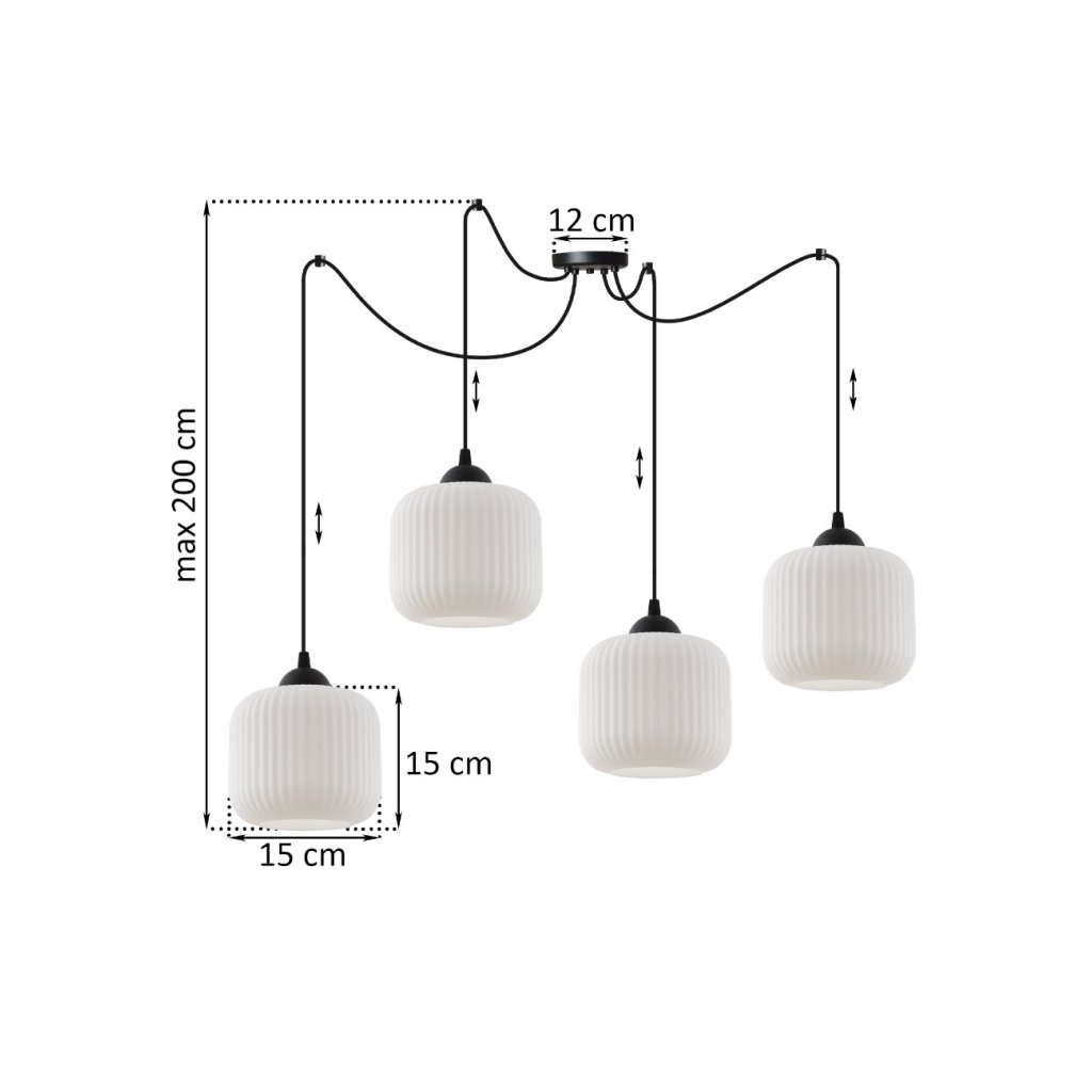 Závěsné svítidlo Riffle Spider, 4x bílé skleněné stínítko, b