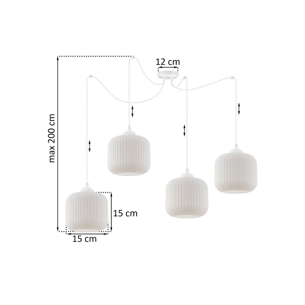 Závěsné svítidlo Riffle Spider, 4x bílé skleněné stínítko, w