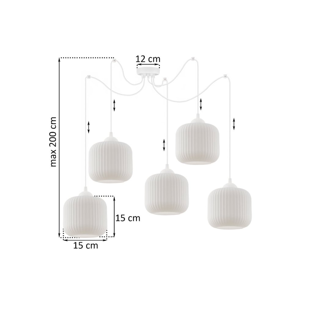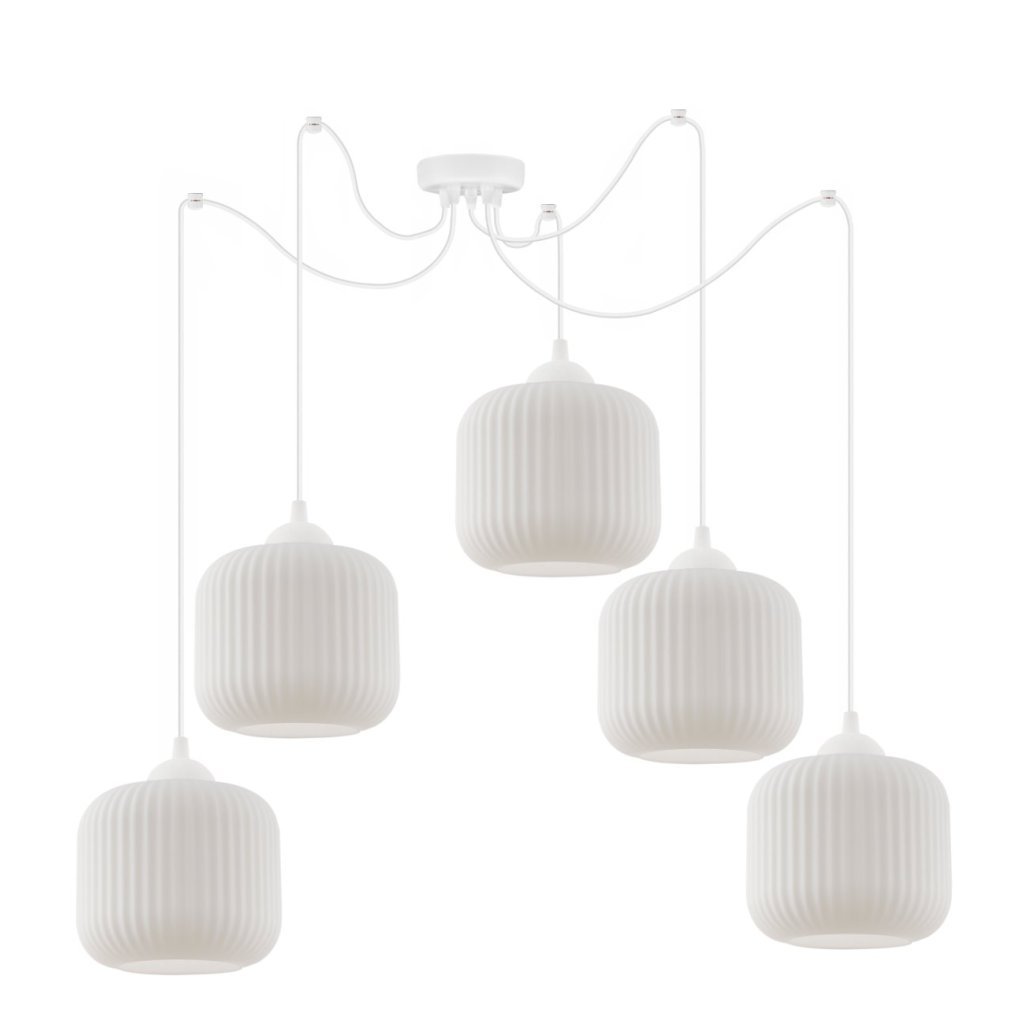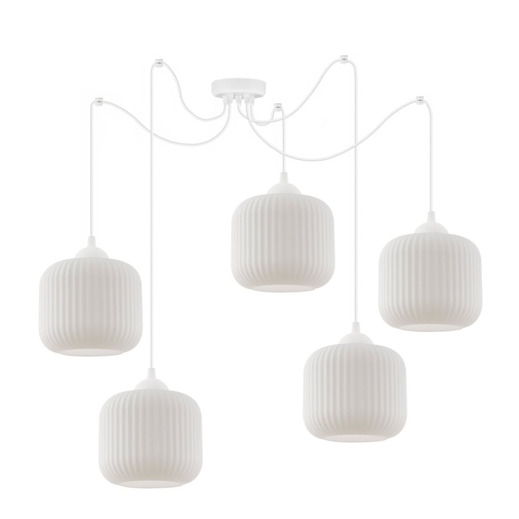 Závěsné svítidlo Riffle Spider, 5x bílé skleněné stínítko, w