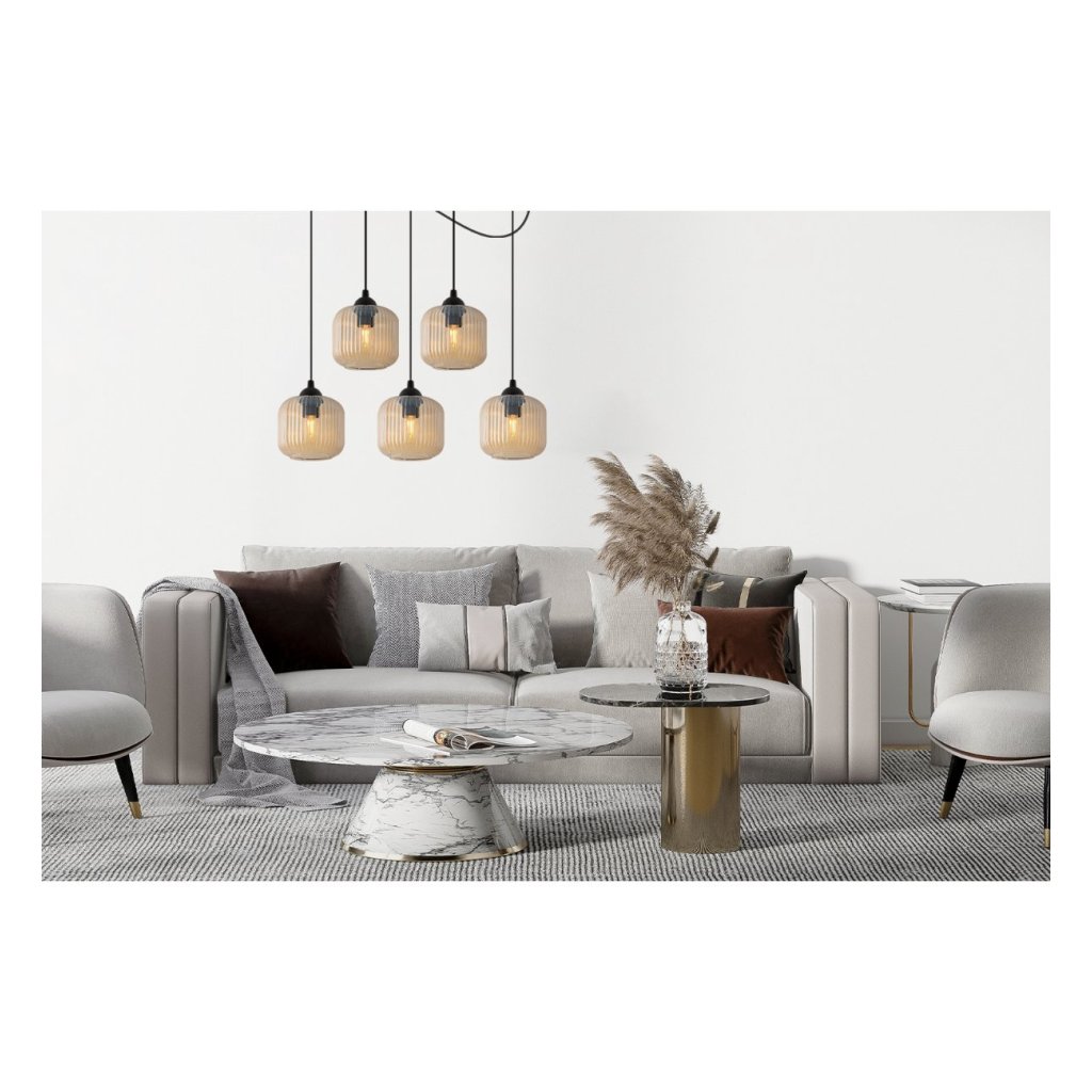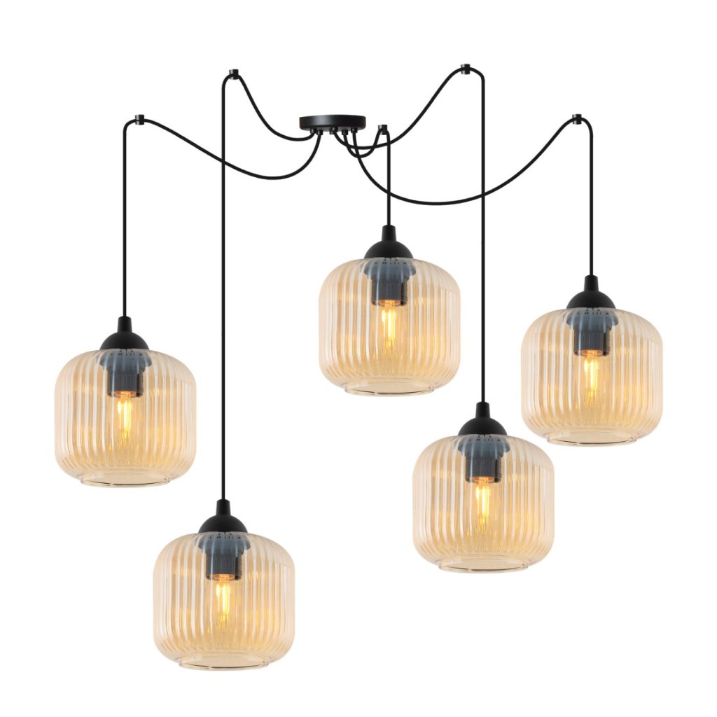 Závěsné svítidlo Riffle Spider, 5x medové skleněné stínítko