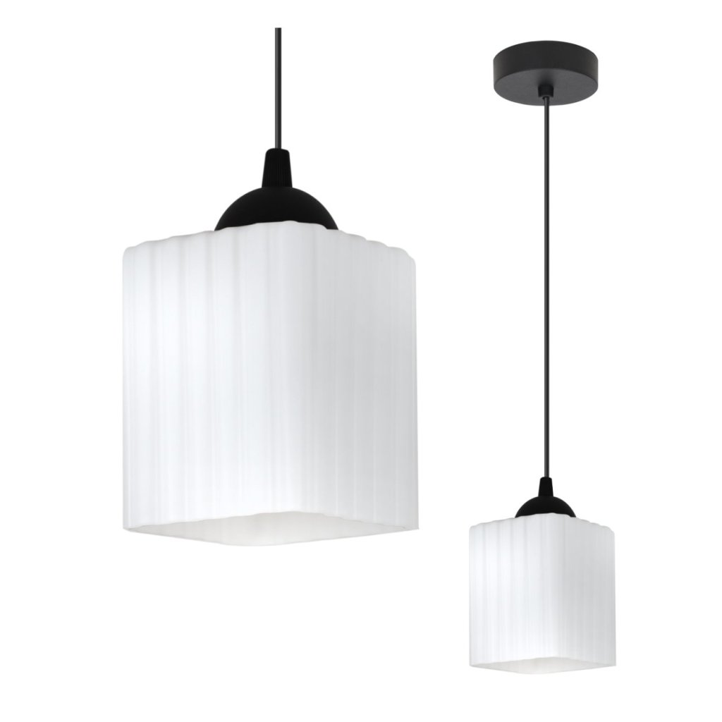 Závěsné svítidlo Riffle Square, 1x bílé skleněné stínítko, b
