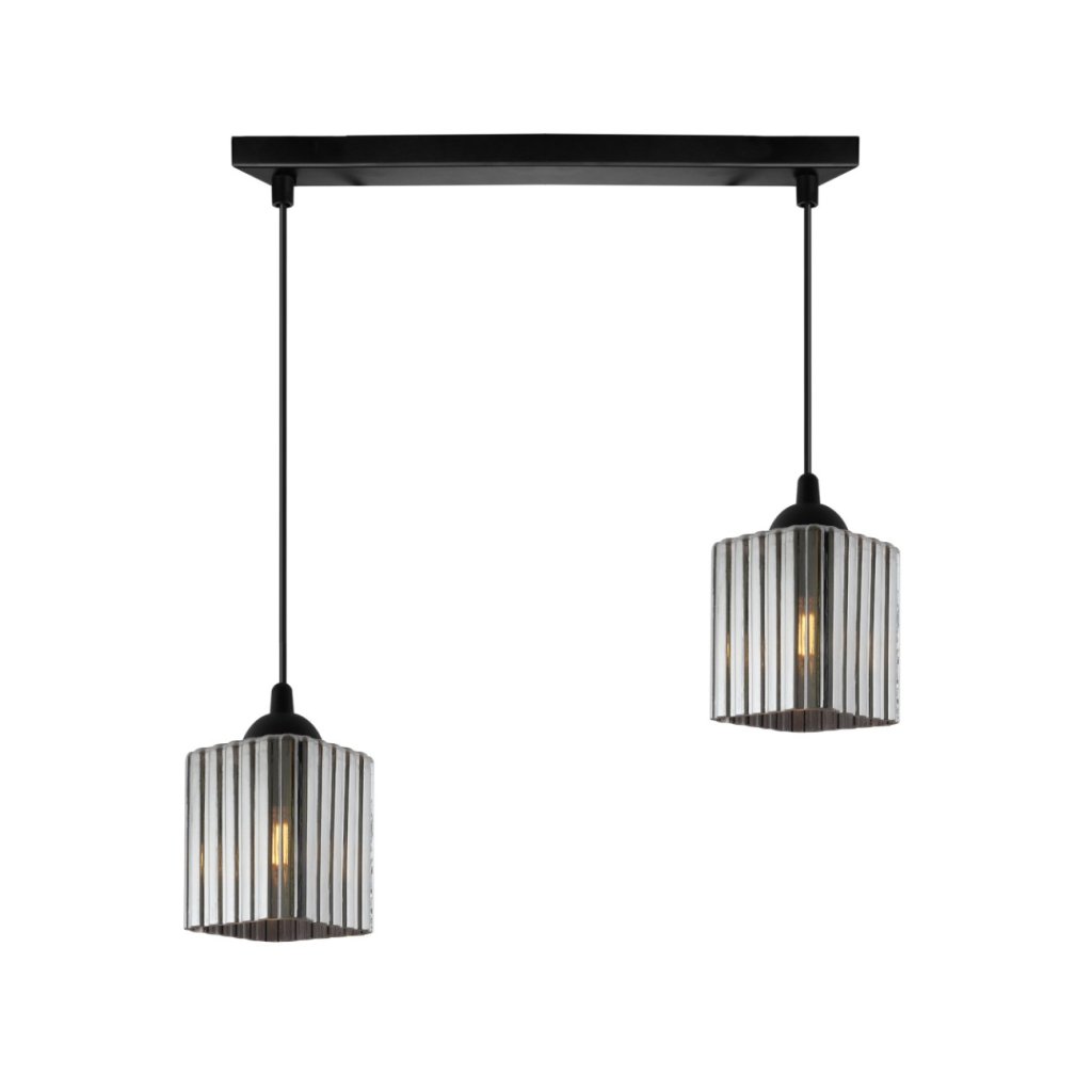 Závěsné svítidlo Riffle Square, 2x grafitové skleněné stínítko, b