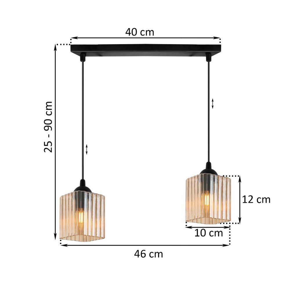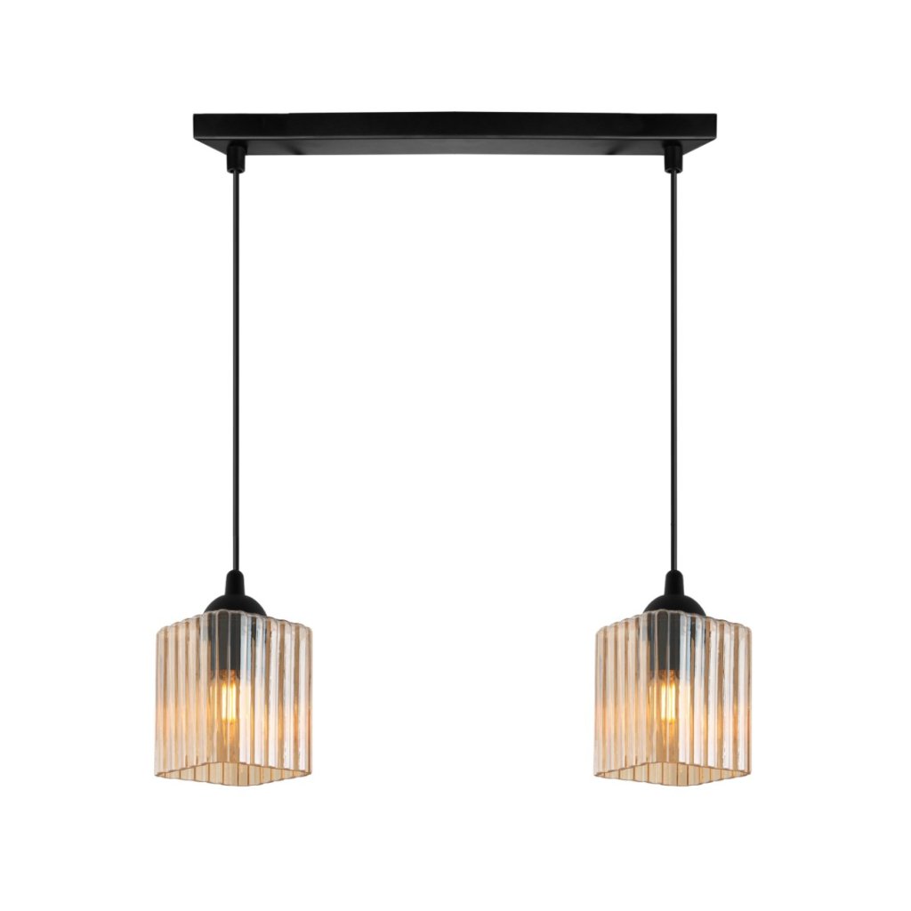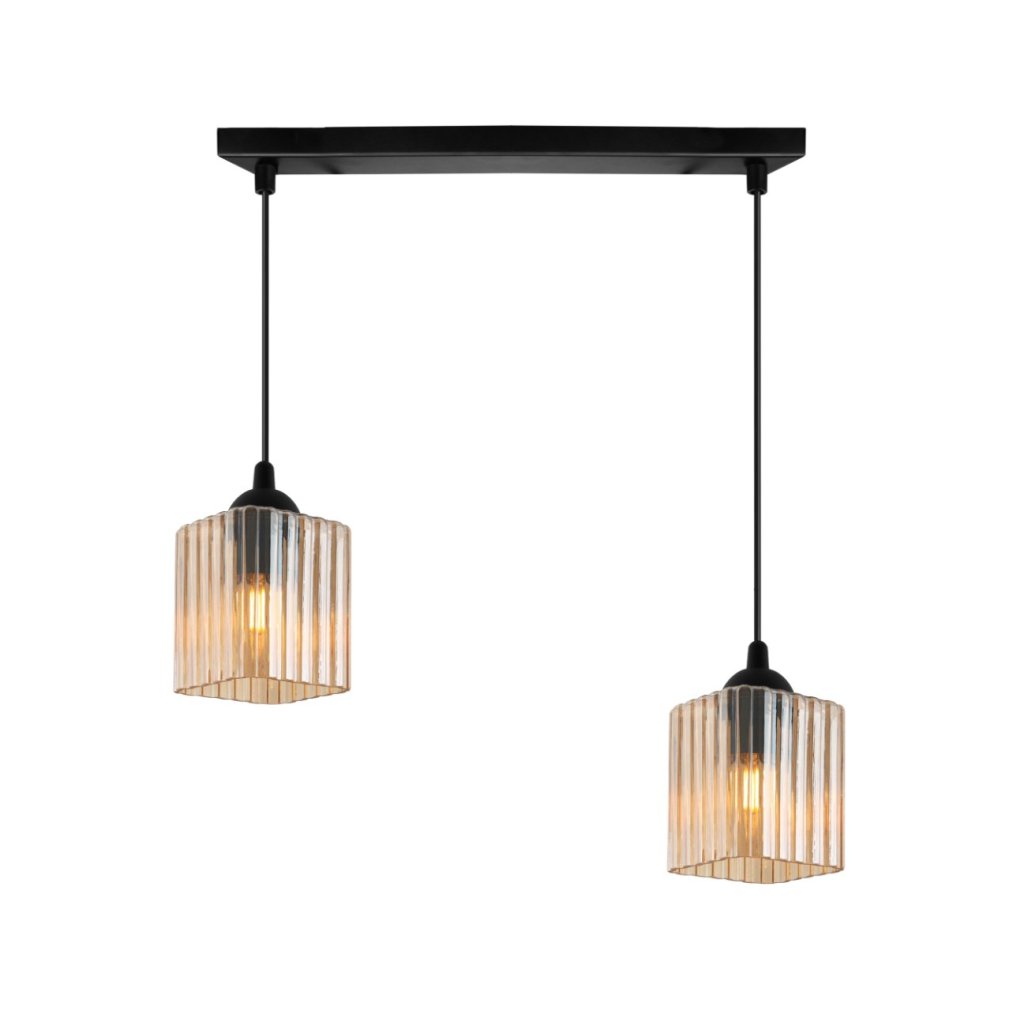 Závěsné svítidlo Riffle Square, 2x medové skleněné stínítko, b
