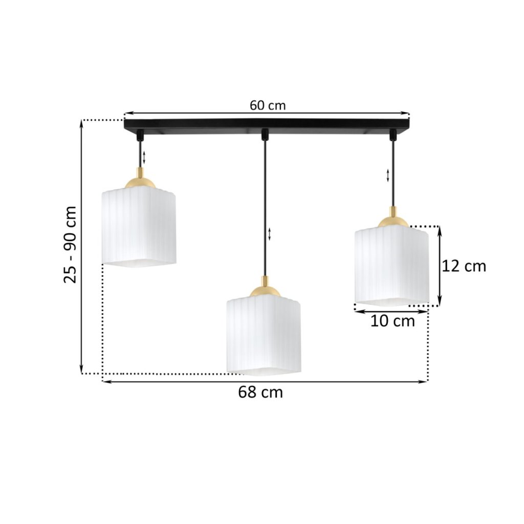 Závěsné svítidlo Riffle Square, 3x bílé skleněné stínítko, b/g