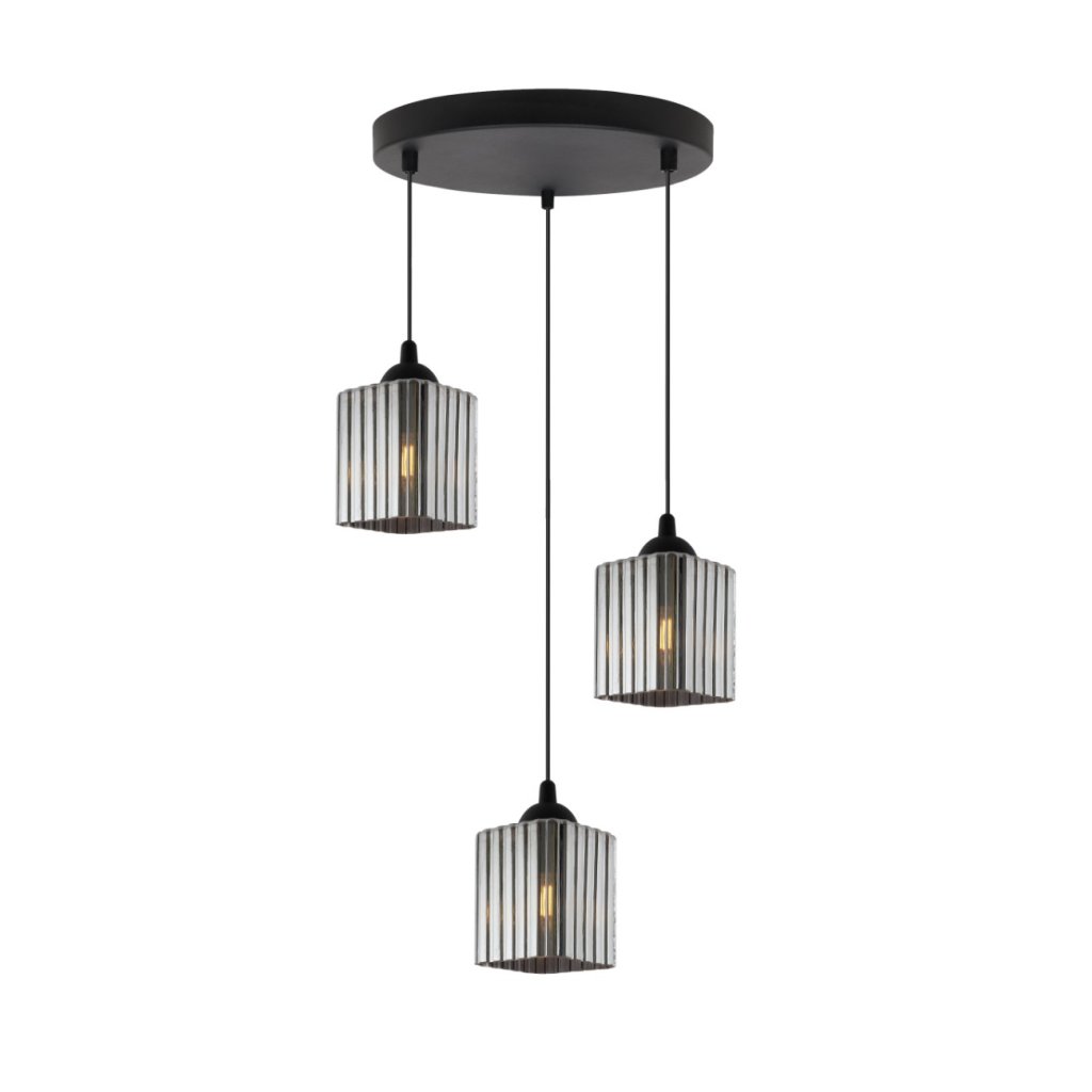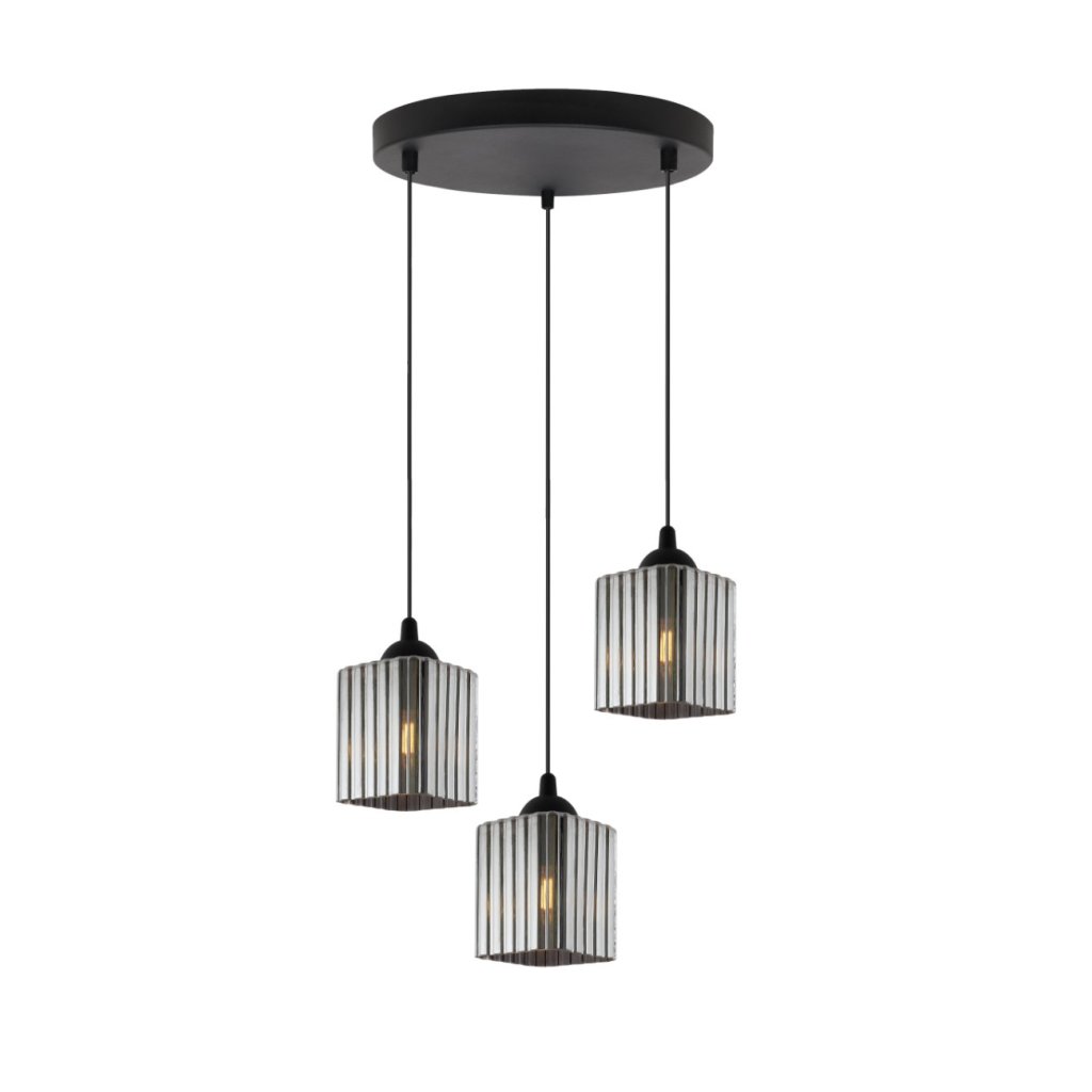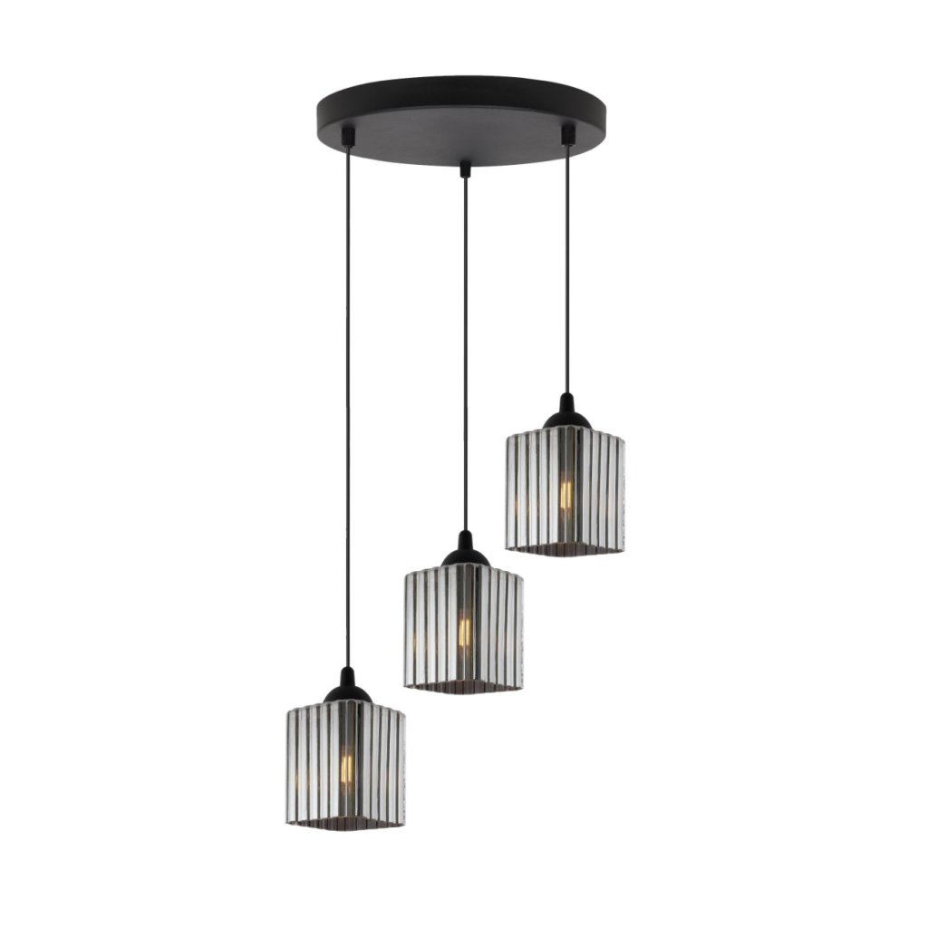 Závěsné svítidlo Riffle Square, 3x grafitové skleněné stínítko, b, o