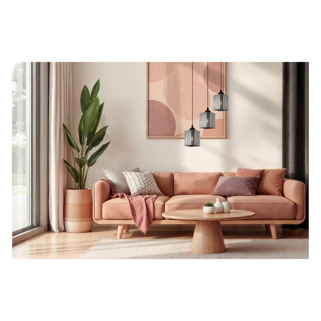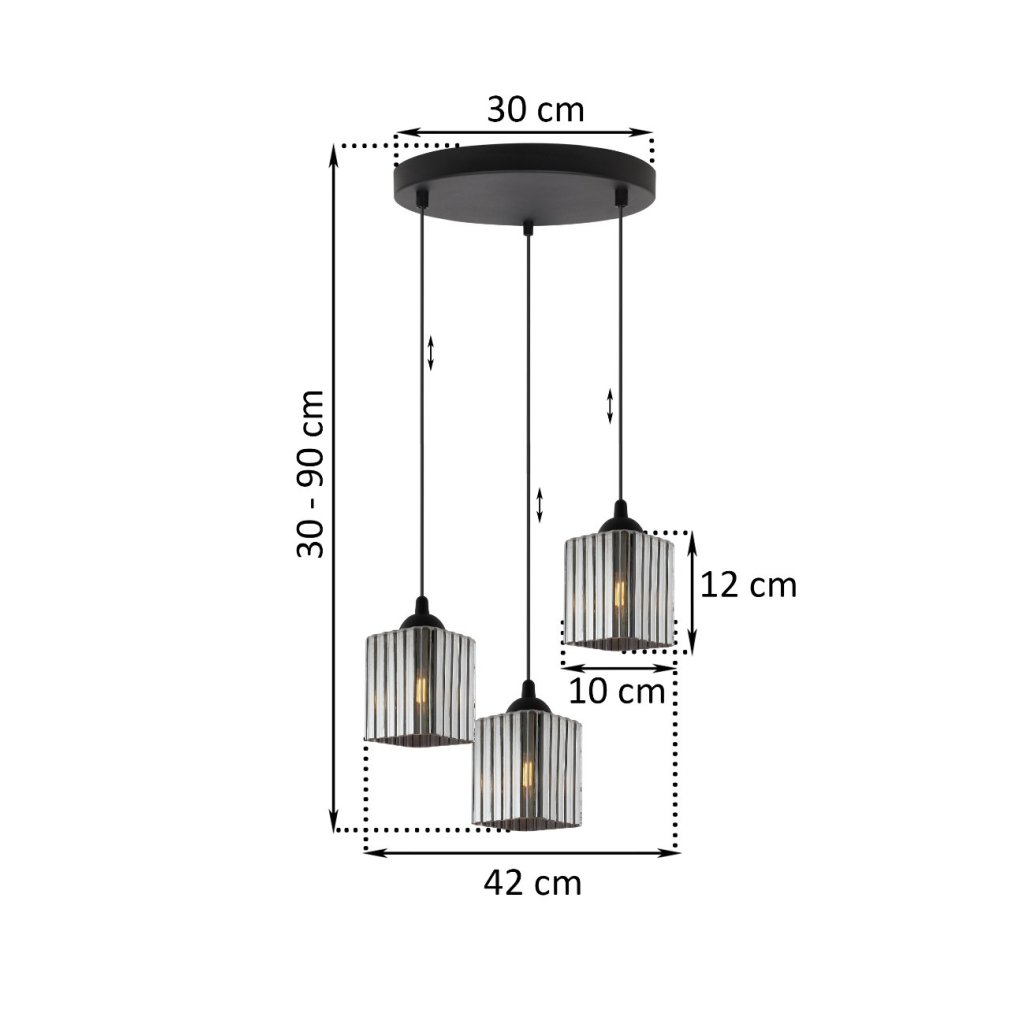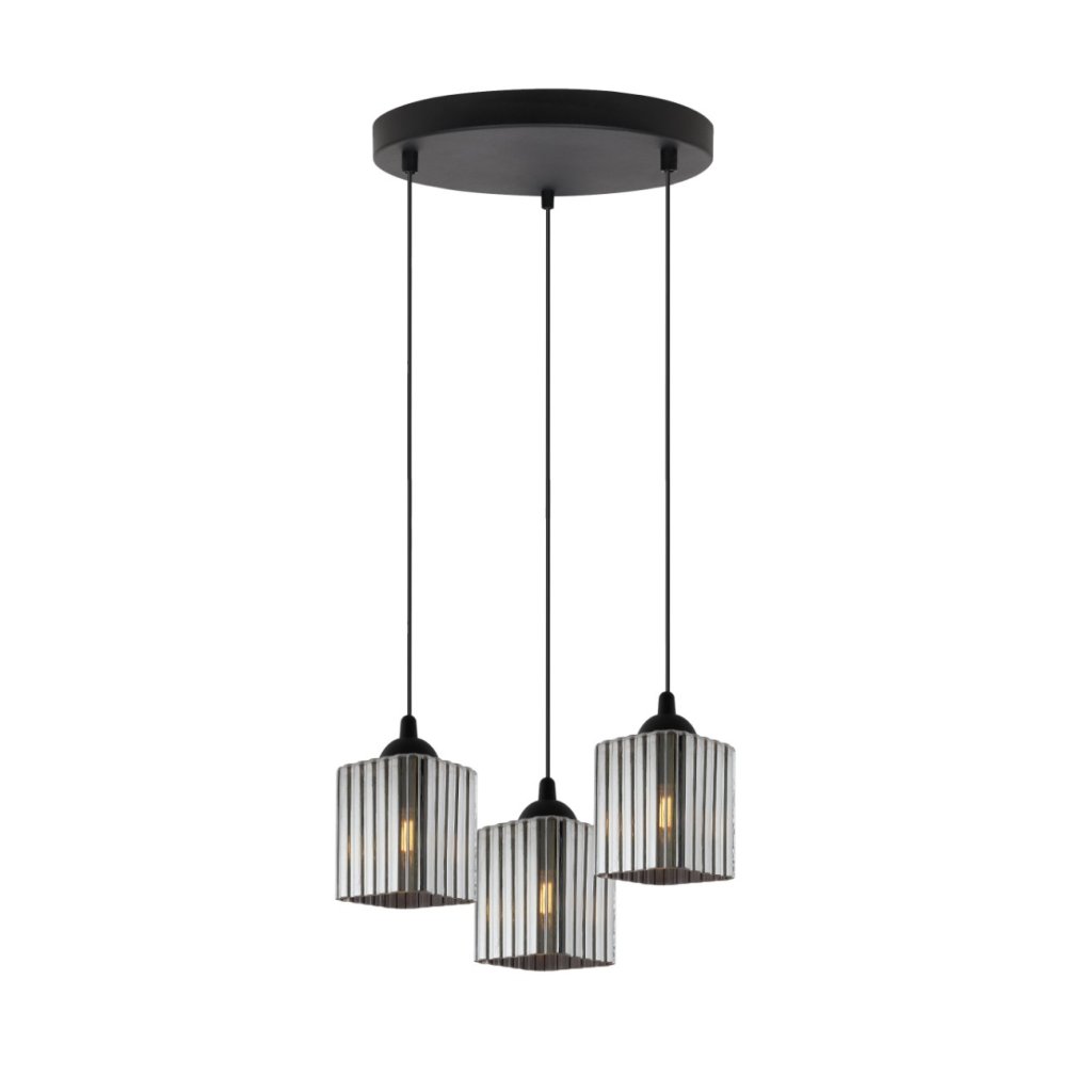 Závěsné svítidlo Riffle Square, 3x grafitové skleněné stínítko, b, o