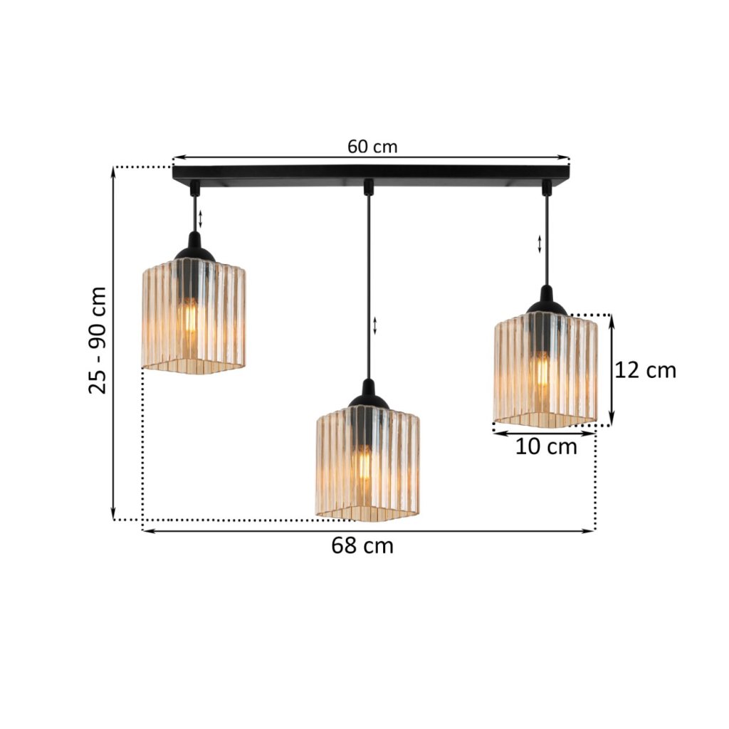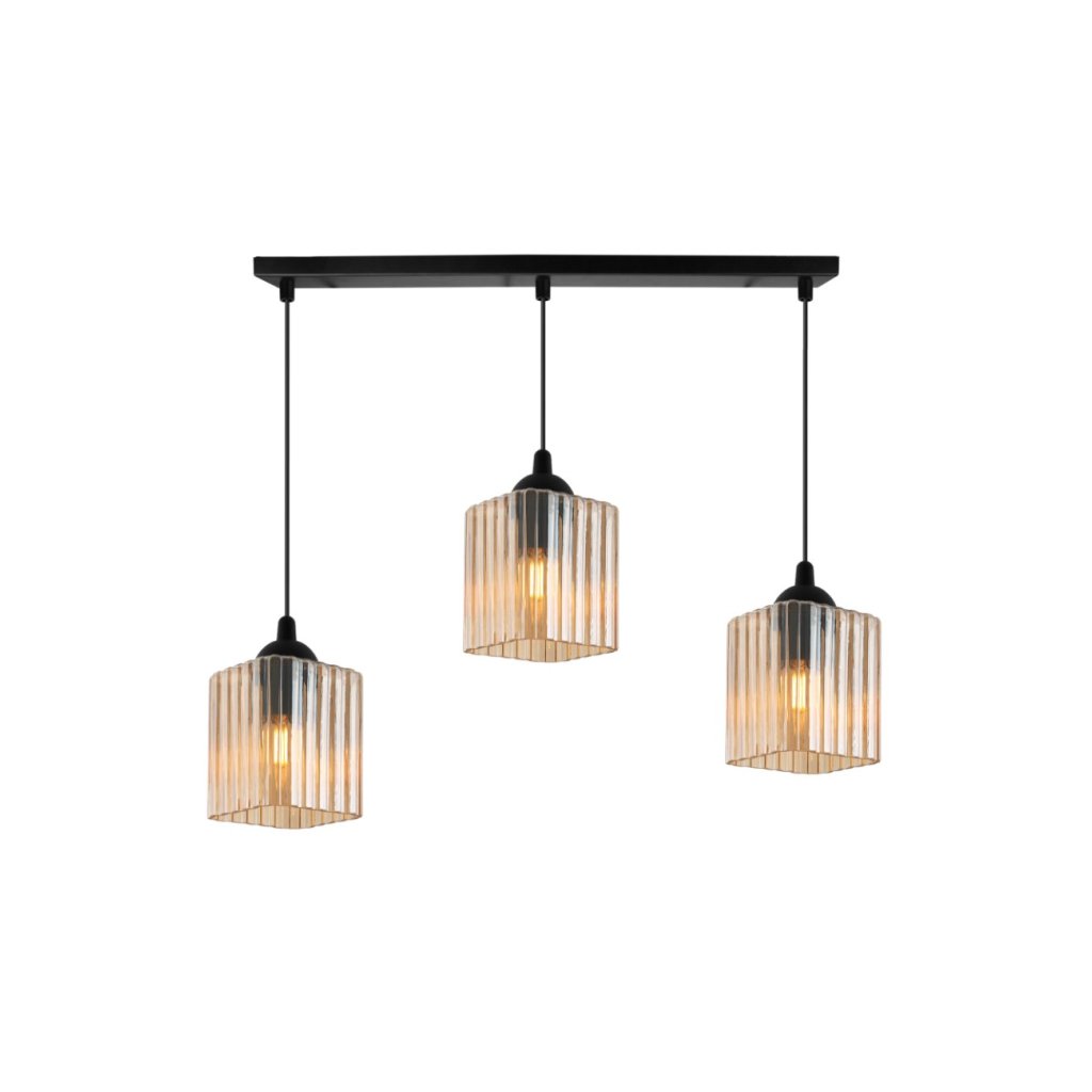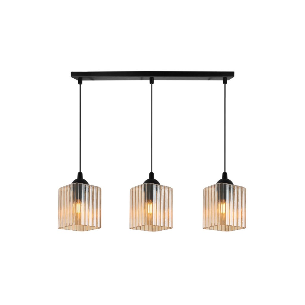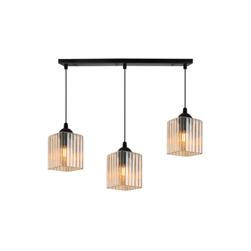 Závěsné svítidlo Riffle Square, 3x medové skleněné stínítko, b