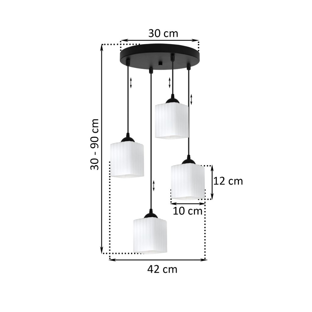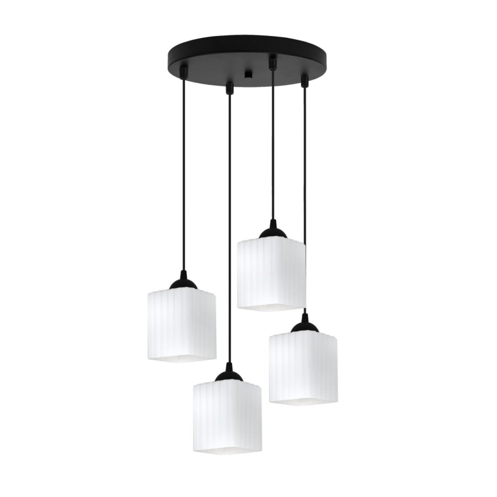 Závěsné svítidlo Riffle Square, 4x bílé skleněné stínítko, b, o