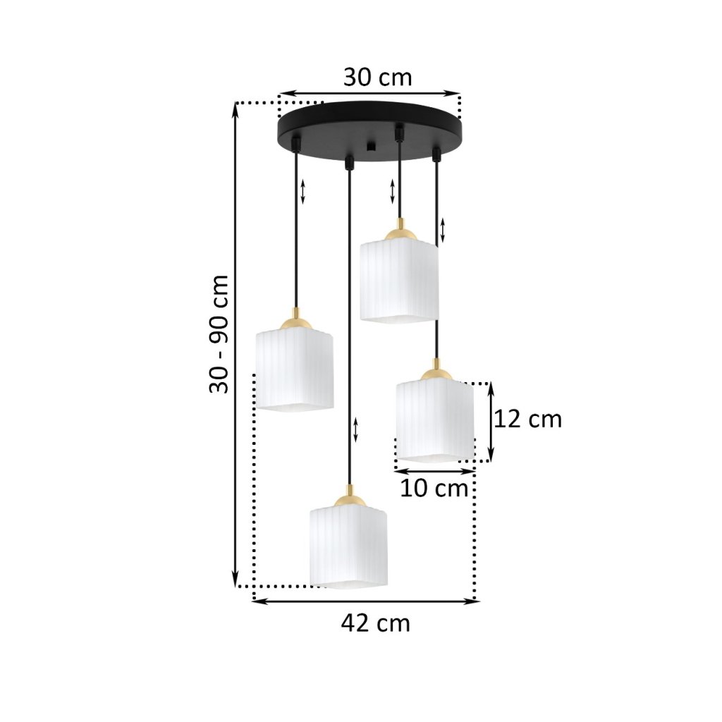 Závěsné svítidlo Riffle Square, 4x bílé skleněné stínítko, b/g, o