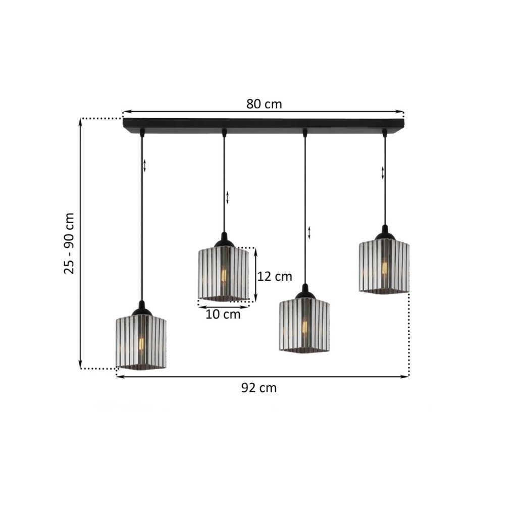 Závěsné svítidlo Riffle Square, 4x grafitové skleněné stínítko, b