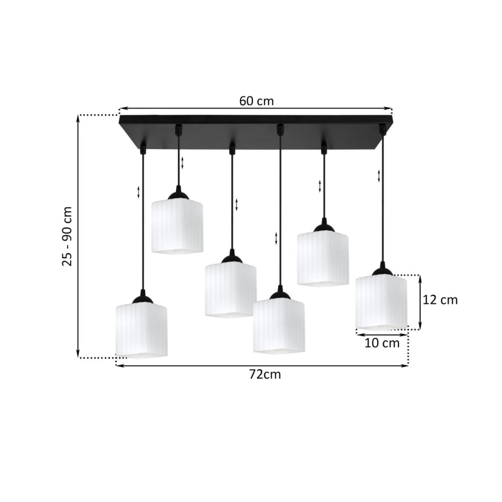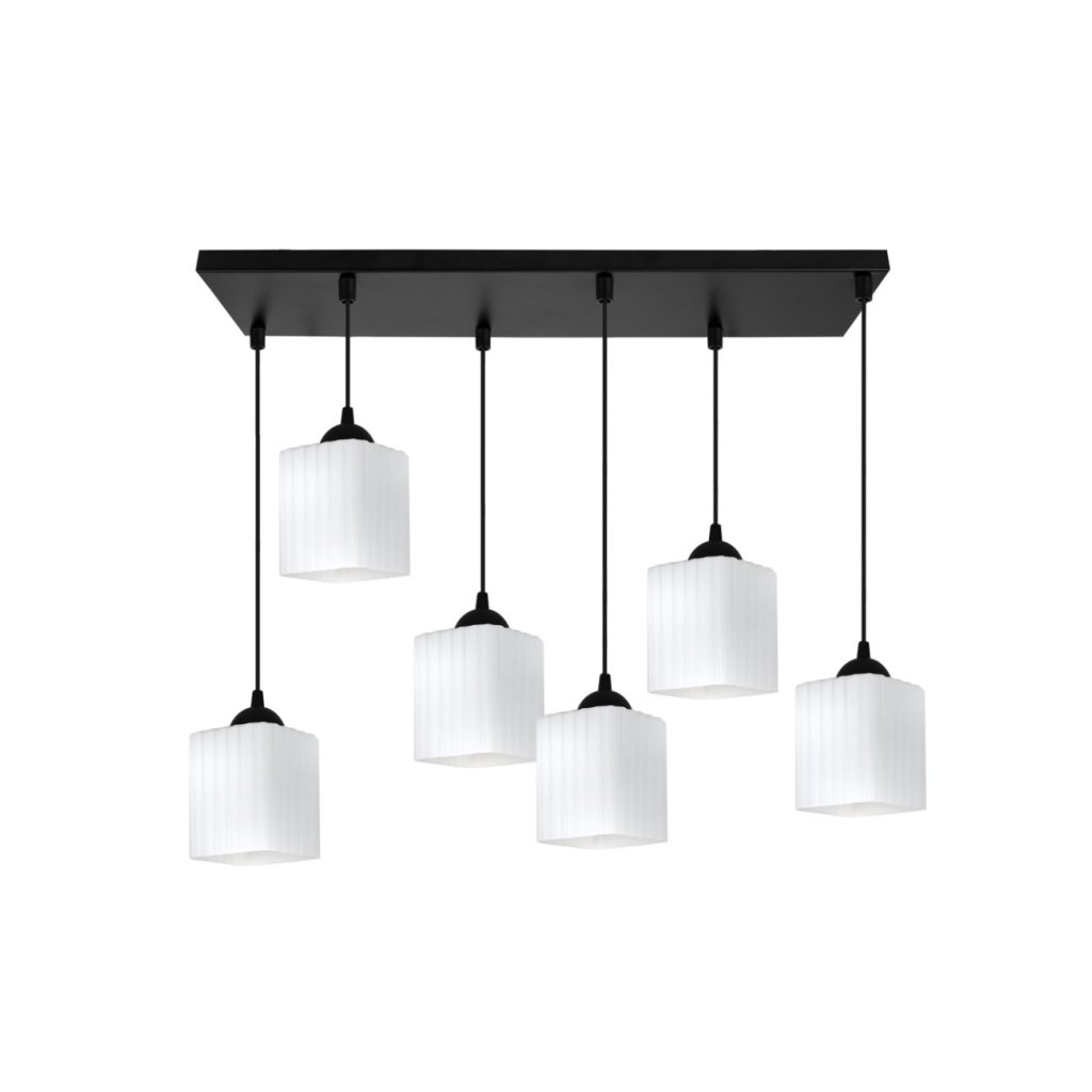 Závěsné svítidlo Riffle Square, 6x bílé skleněné stínítko, b