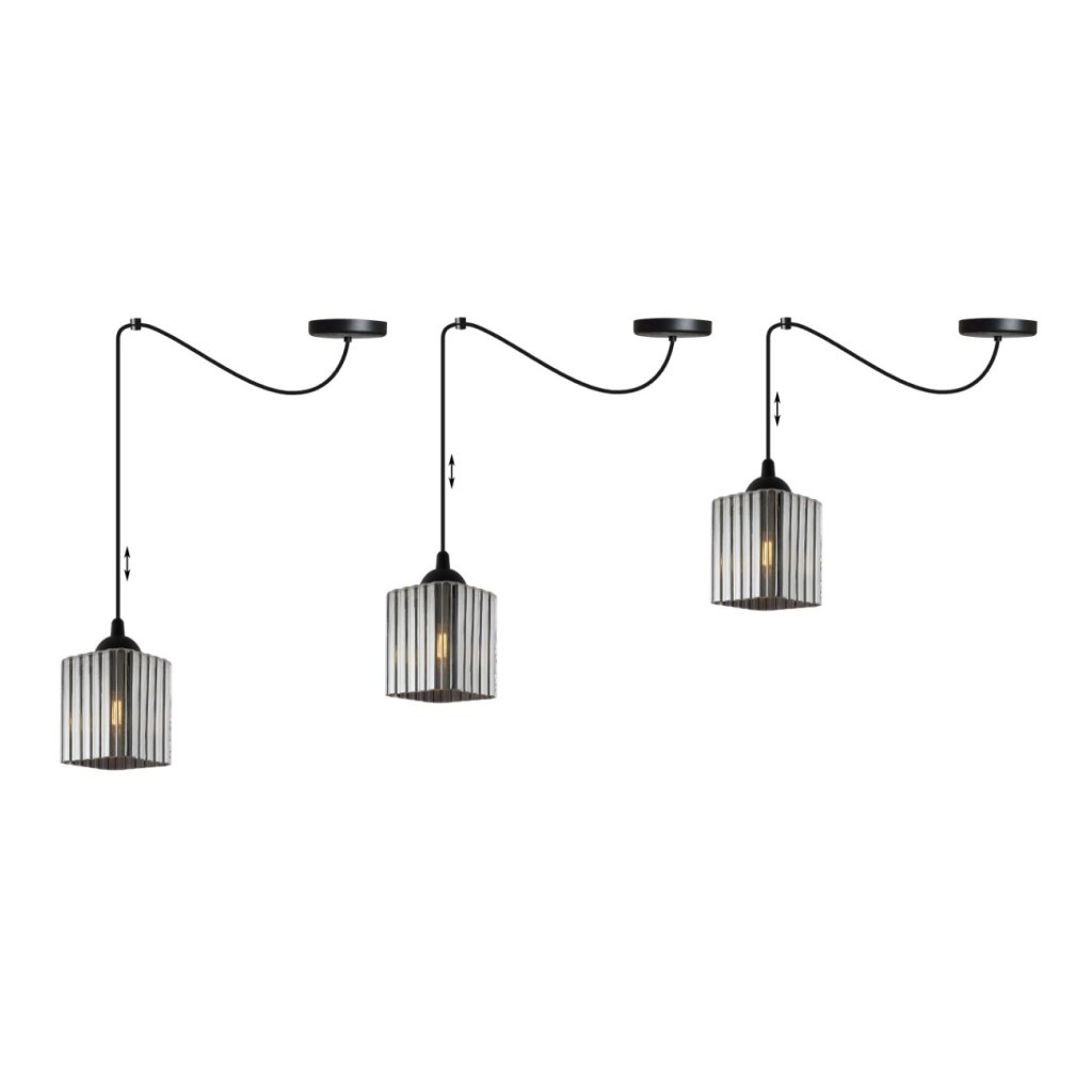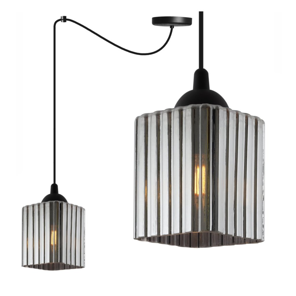 Závěsné svítidlo Riffle Square Spider, 1x grafitové skleněné stínítko, b