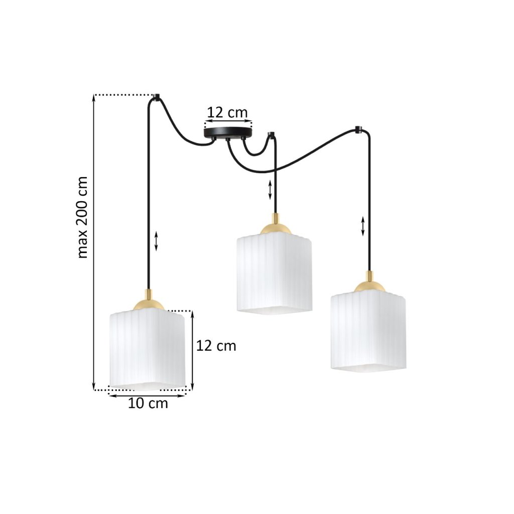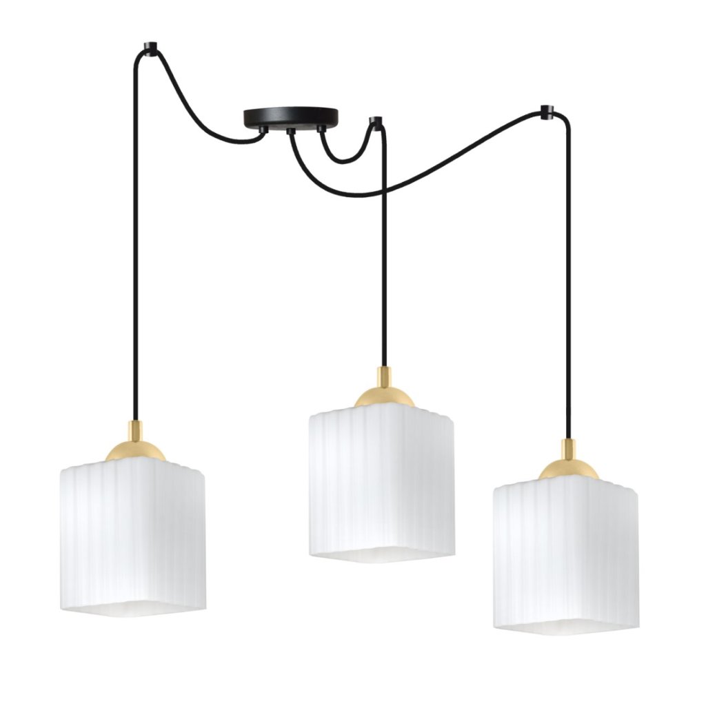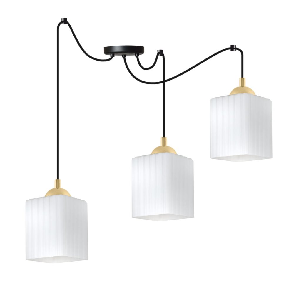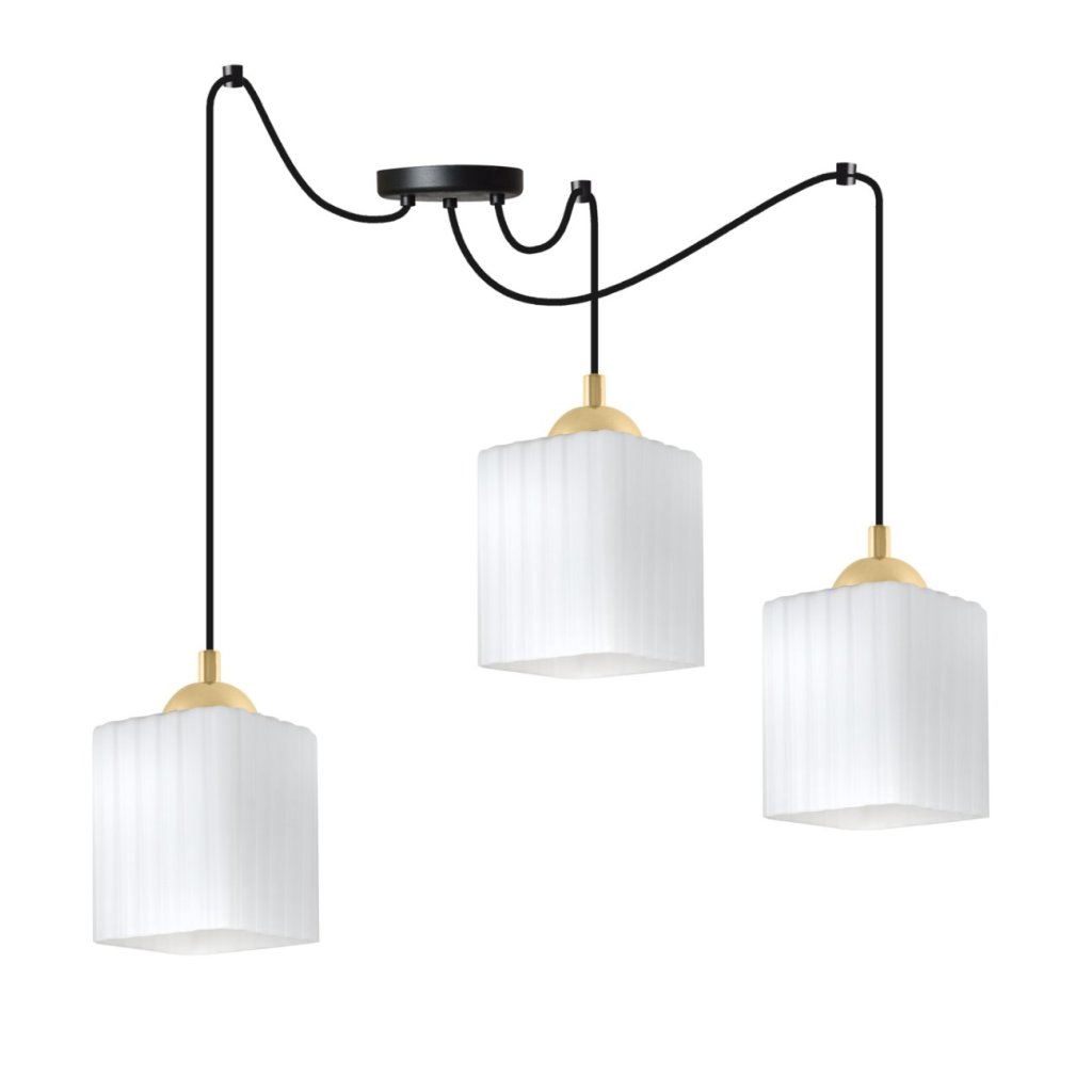 Závěsné svítidlo Riffle Square Spider, 3x bílé skleněné stínítko, b/g