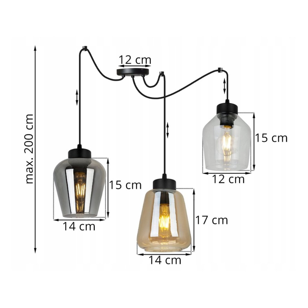 Závěsné svítidlo Rijeka Spider 3, 3x skleněné stínítko (mix 3 barev)