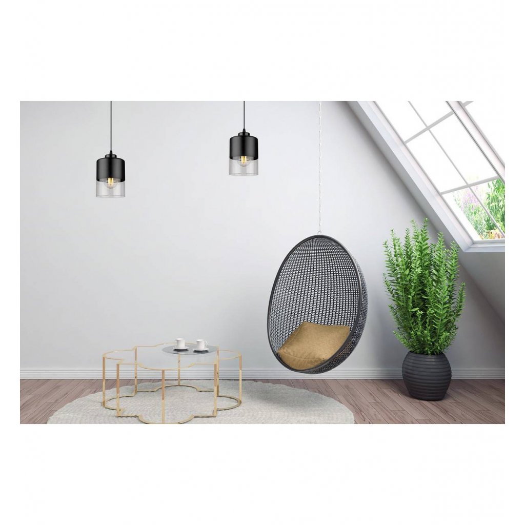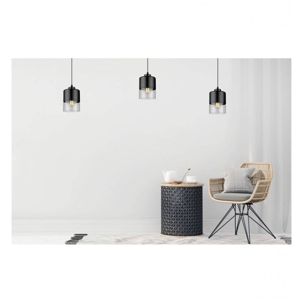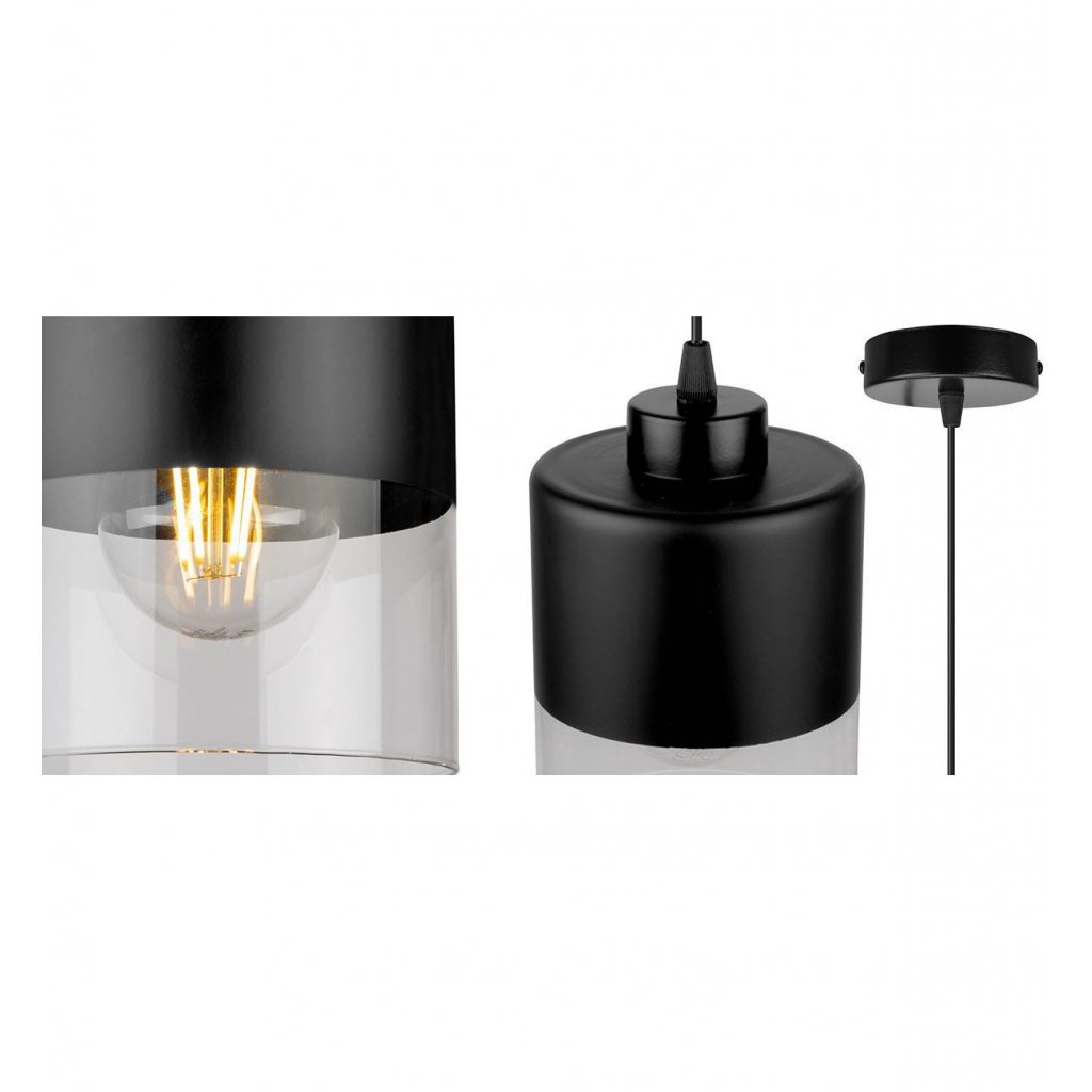 Závěsné svítidlo Roma, 1x černé/transparentní skleněné stínítko