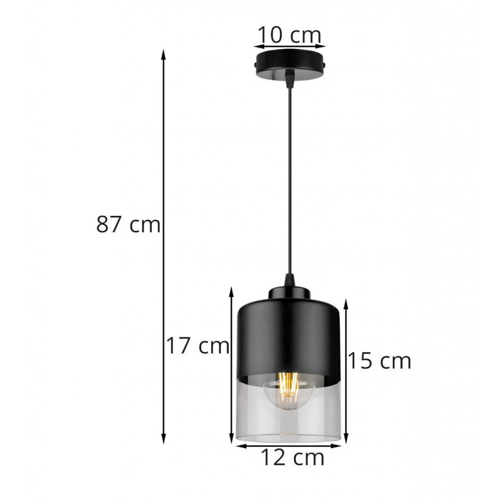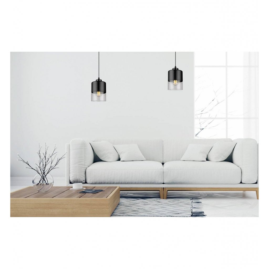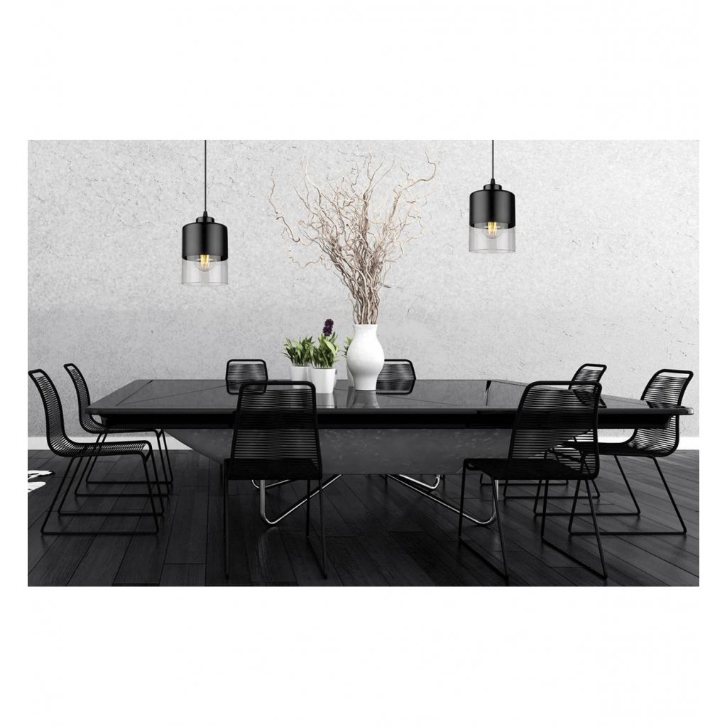 Závěsné svítidlo Roma, 1x černé/transparentní skleněné stínítko