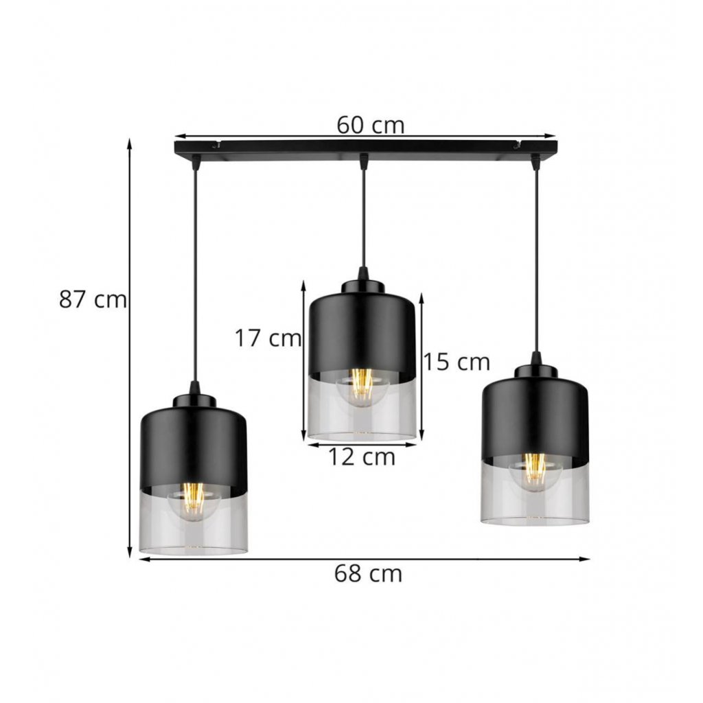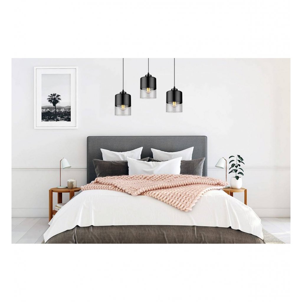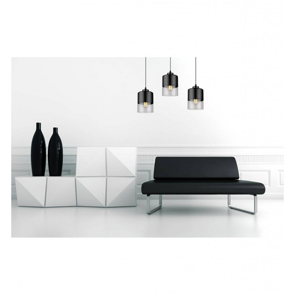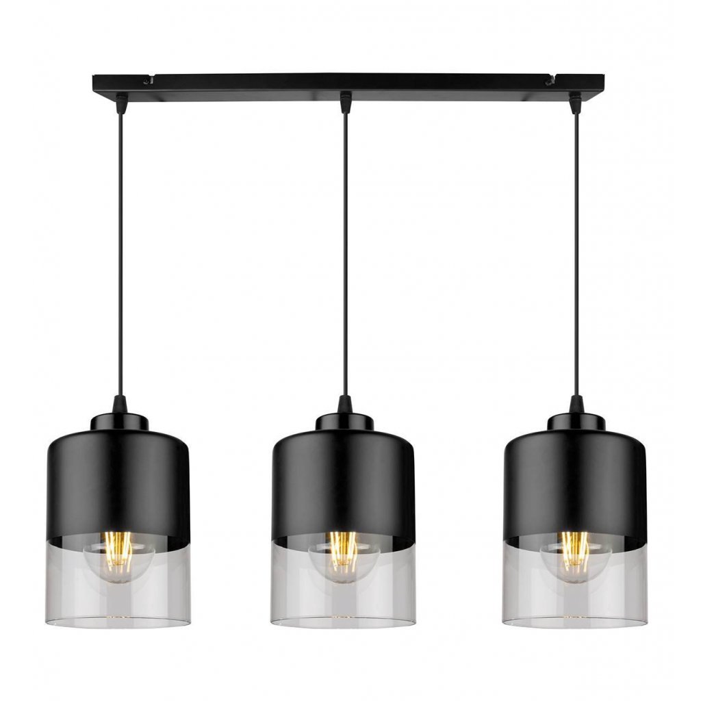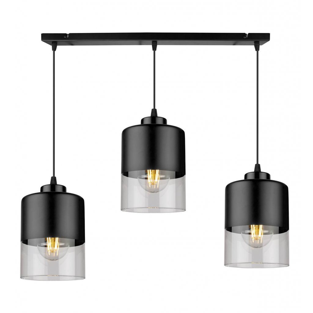 Závěsné svítidlo Roma, 3x černé/transparentní skleněné stínítko