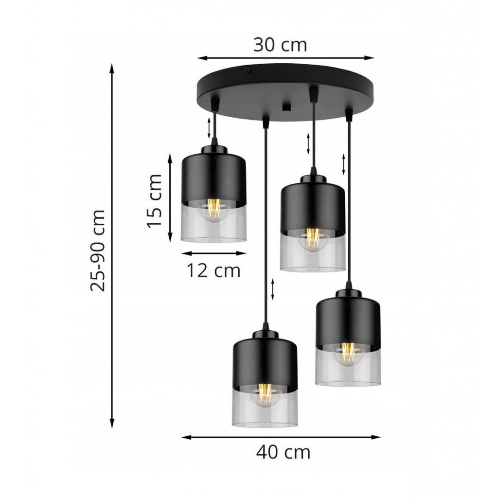 Závěsné svítidlo Roma, 4x černé/transparentní skleněné stínítko,
