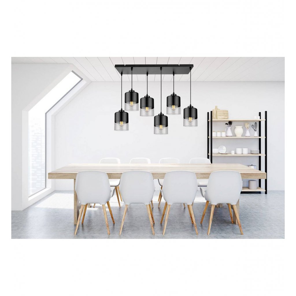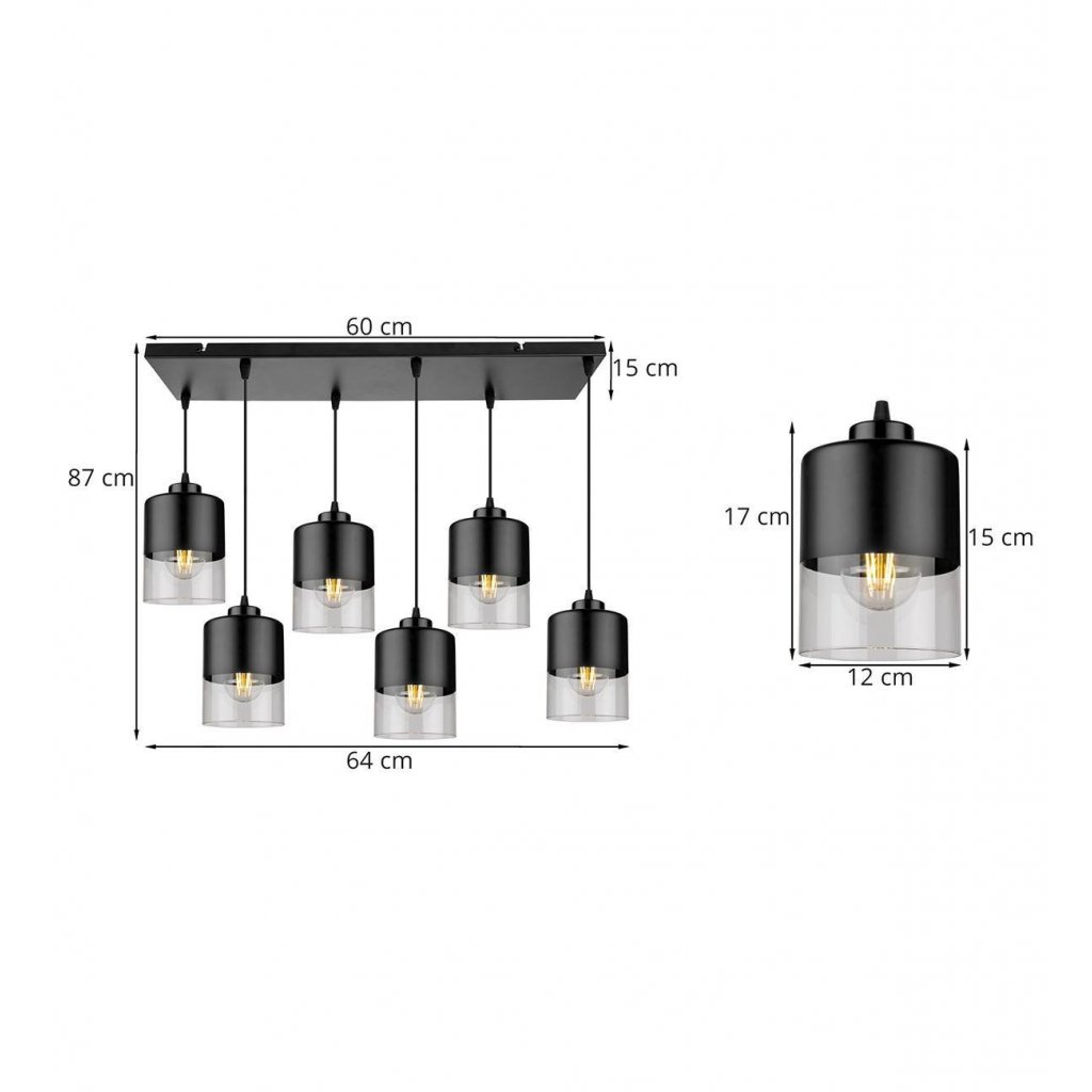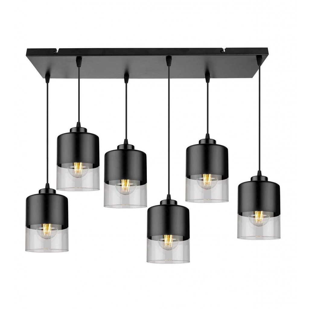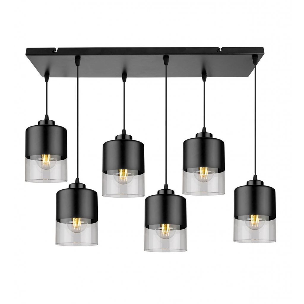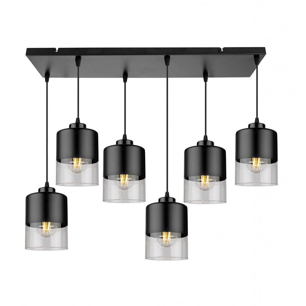 Závěsné svítidlo Roma, 6x černé/transparentní skleněné stínítko