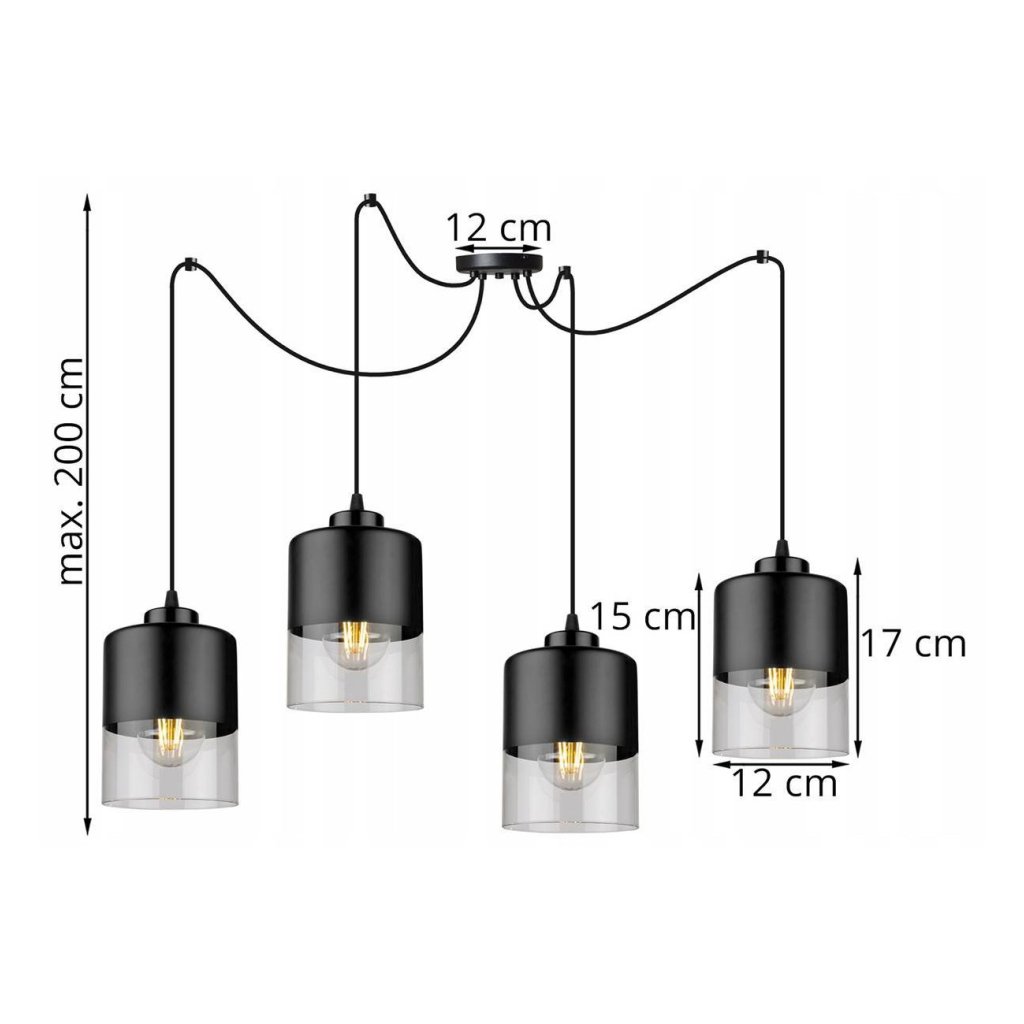 Závěsné svítidlo Roma Spider, 4x černé/transparentní skleněné stínítko
