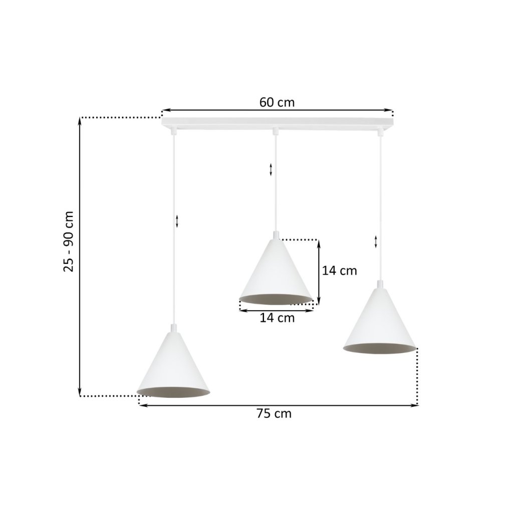 Závěsné svítidlo Soho, 3x bílé kovové stínítko, (fi 14cm)