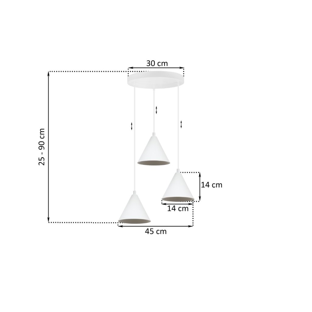 Závěsné svítidlo Soho, 3x bílé kovové stínítko, (fi 14cm),