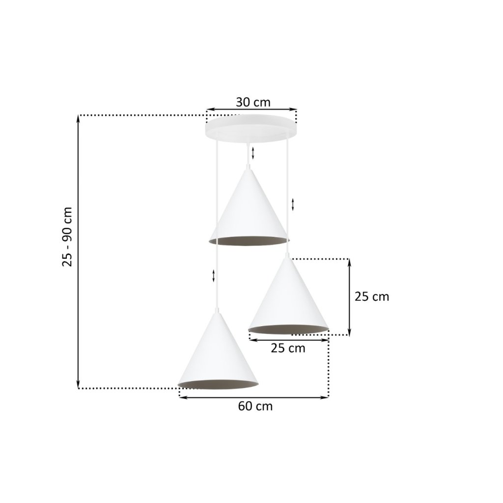 Závěsné svítidlo Soho, 3x bílé kovové stínítko, (fi 25cm),