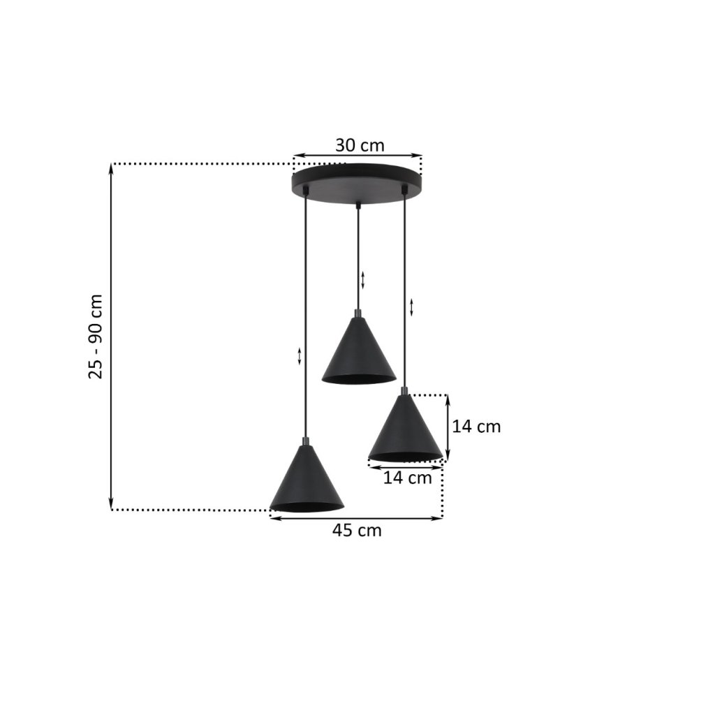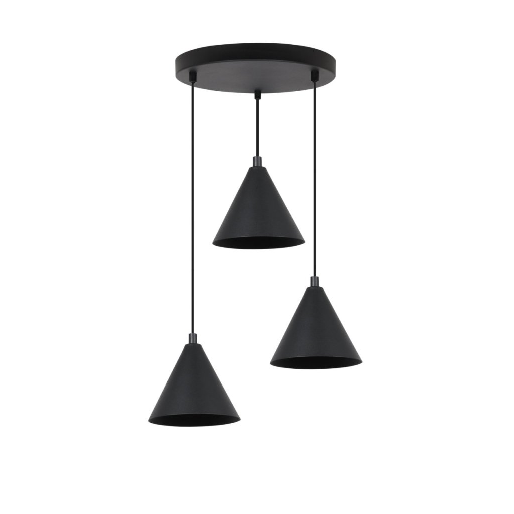 Závěsné svítidlo Soho, 3x černé kovové stínítko, (fi 14cm), o
