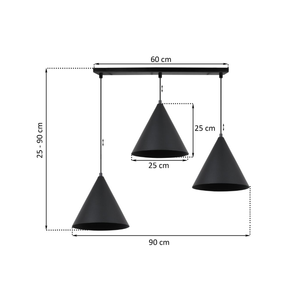 Závěsné svítidlo Soho, 3x černé kovové stínítko, (fi 25cm)