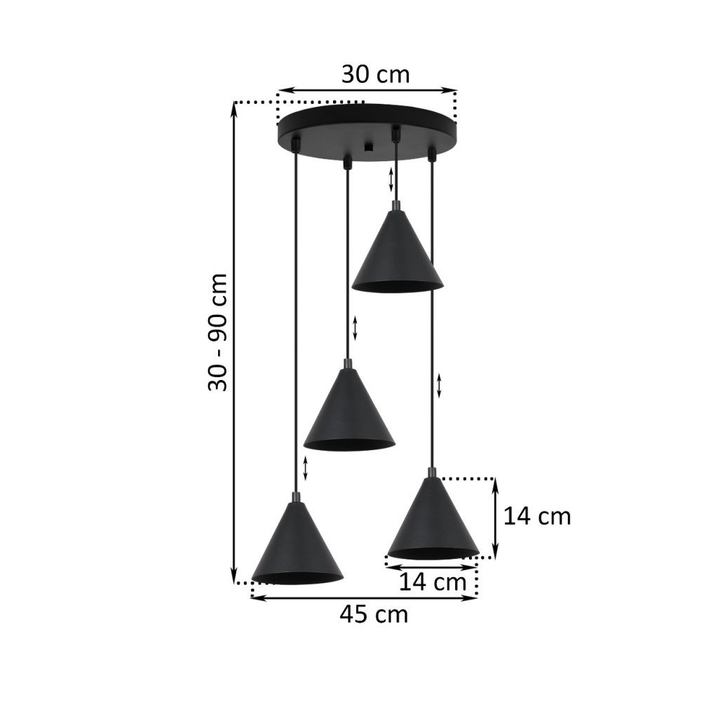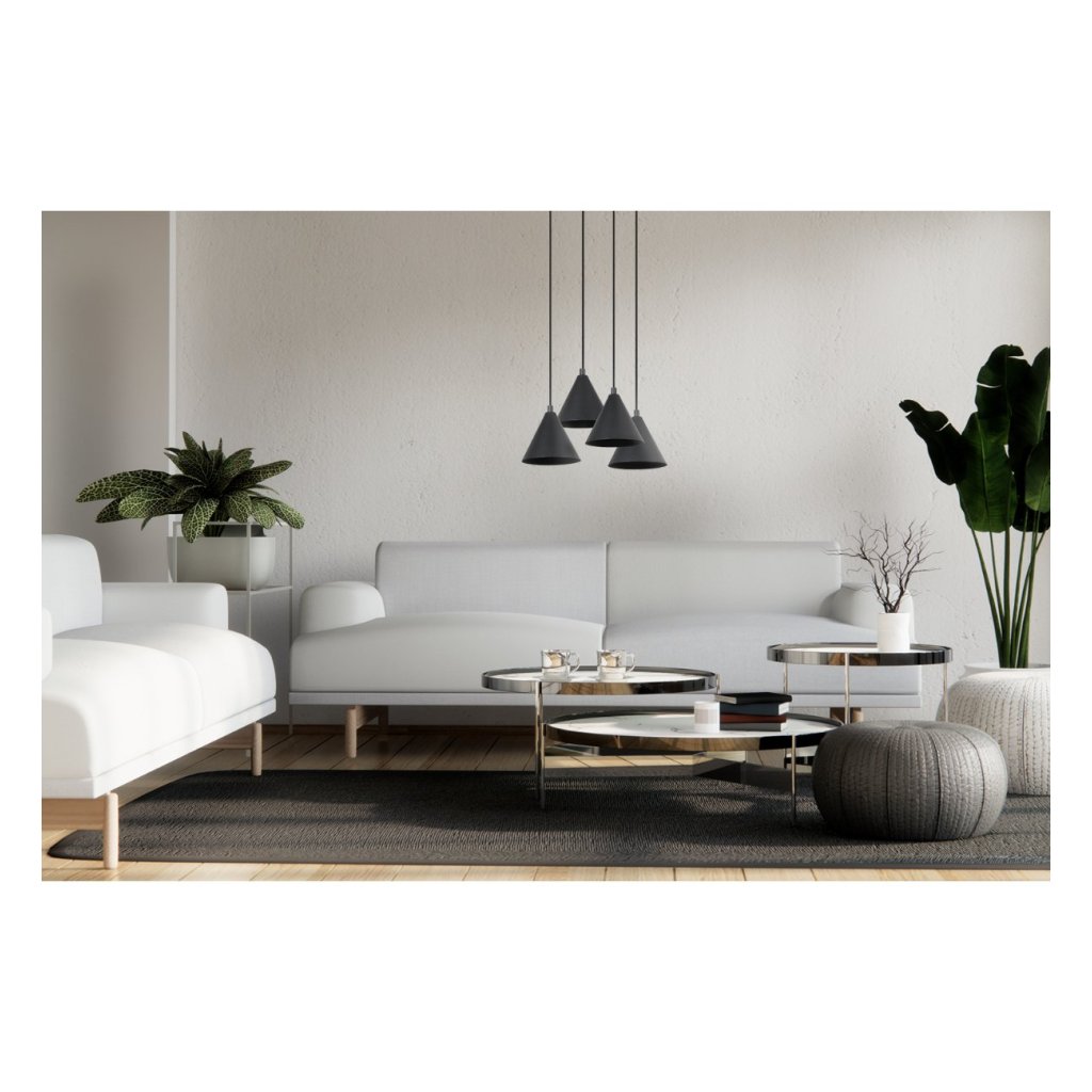 Závěsné svítidlo Soho, 4x černé kovové stínítko,