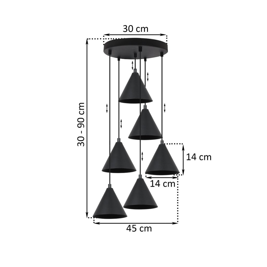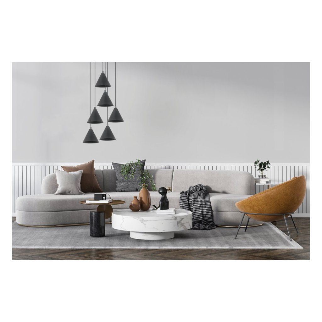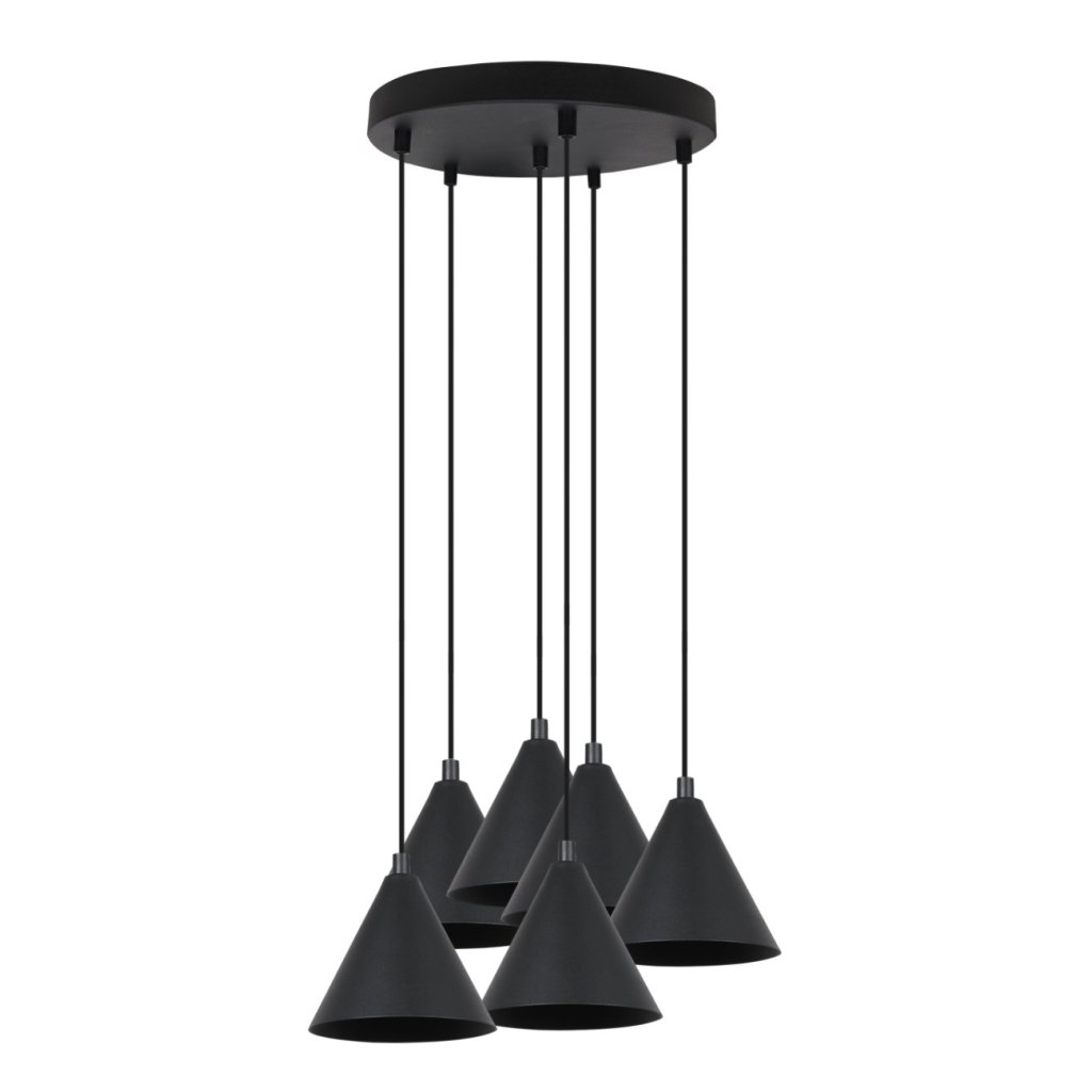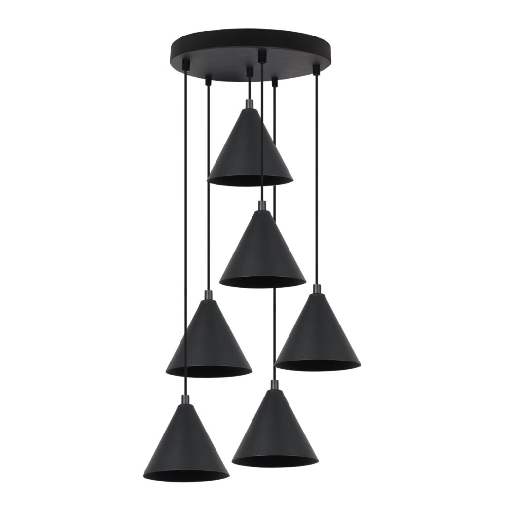 Závěsné svítidlo Soho, 6x černé kovové stínítko,