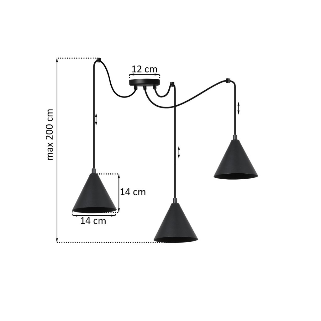 Závěsné svítidlo Soho Spider, 3x černé kovové stínítko, (fi 14cm)