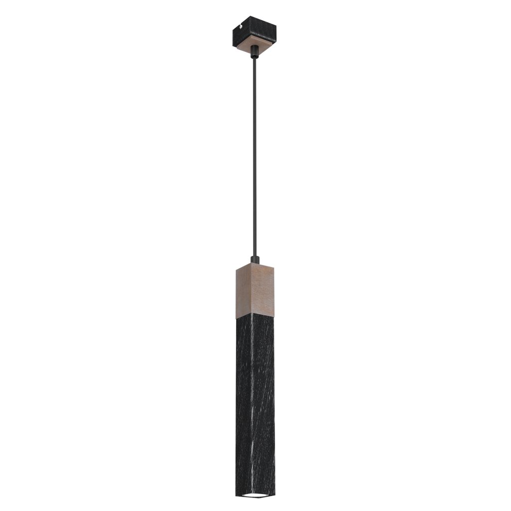 Závěsné svítidlo Solo Sawn, 1x dřevěné/černé kovové stínítko, b