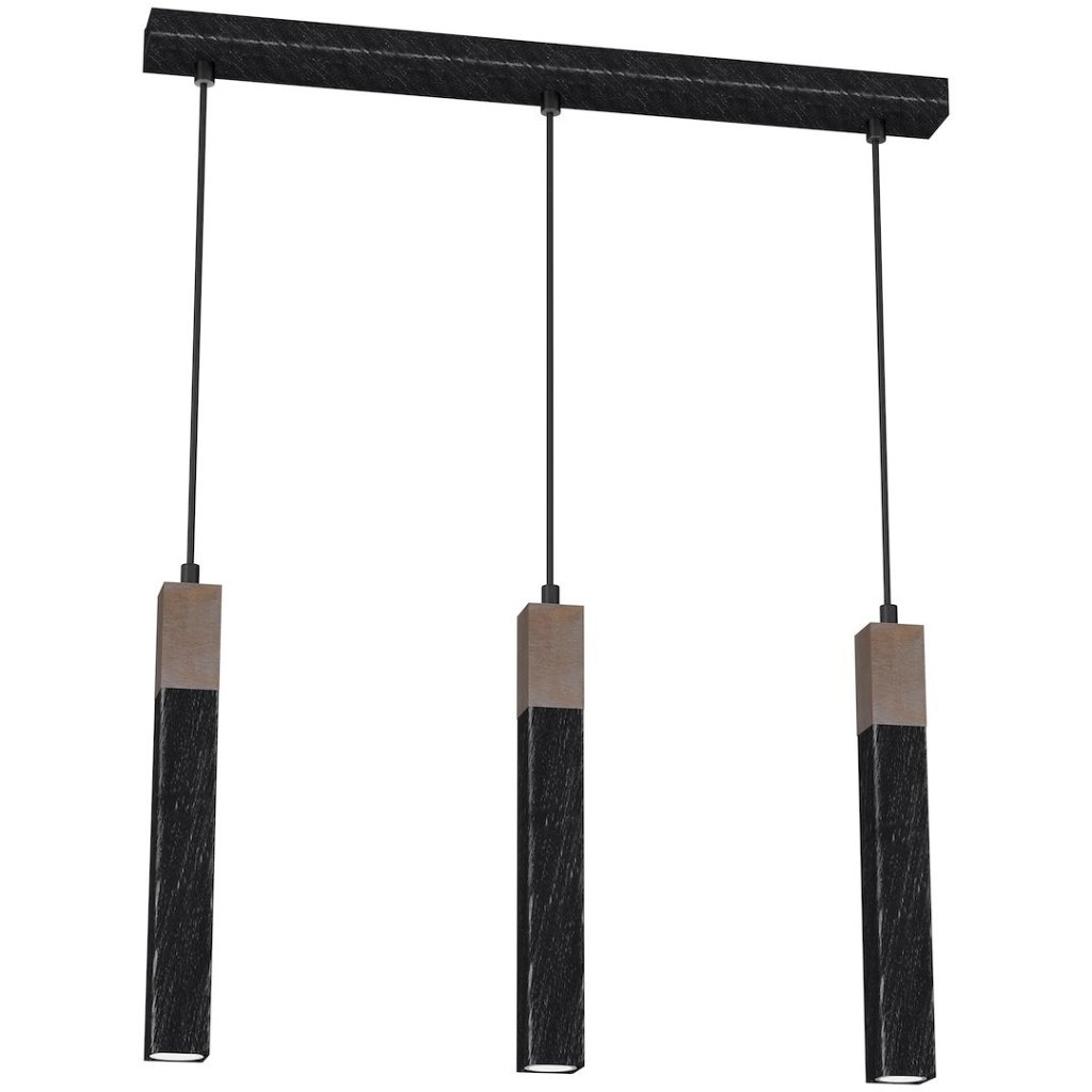 Závěsné svítidlo Solo Sawn, 3x dřevěné/černé kovové stínítko, b