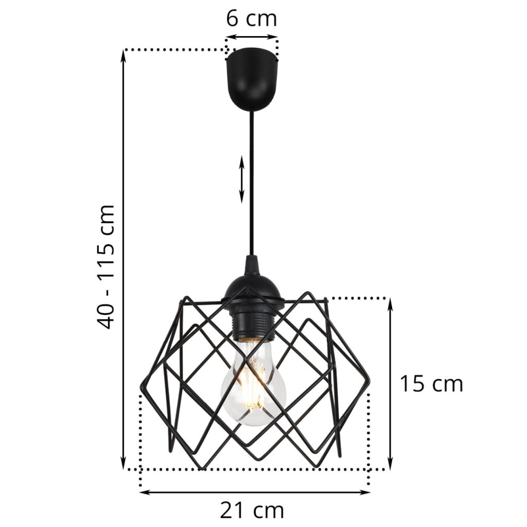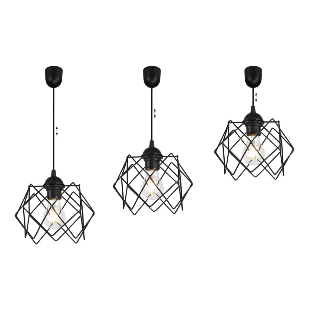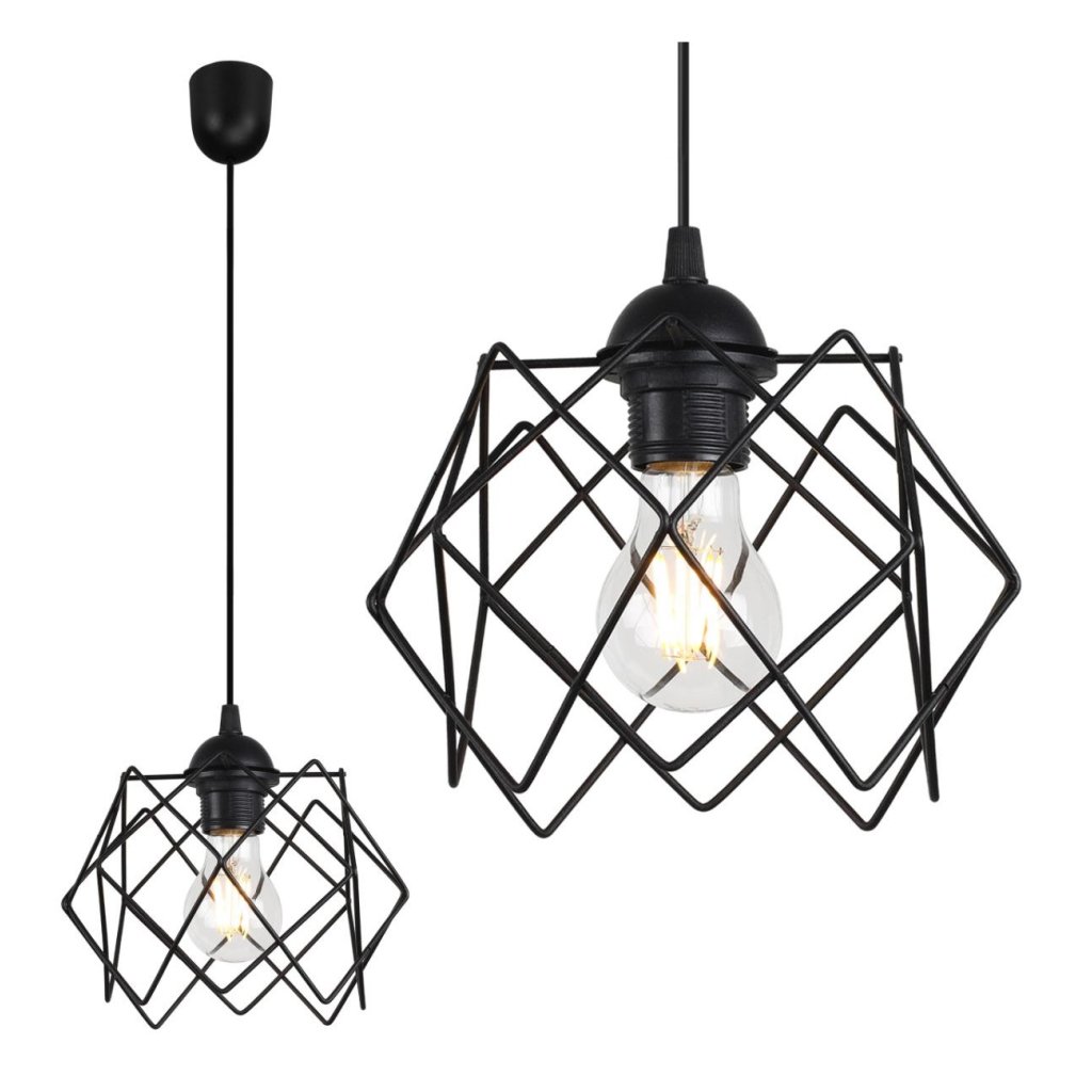 Závěsné svítidlo Stella, 1x černé drátěné stínítko, LP