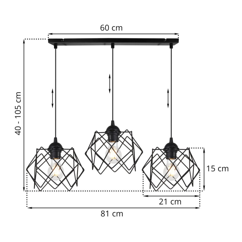 Závěsné svítidlo Stella, 3x černé drátěné stínítko