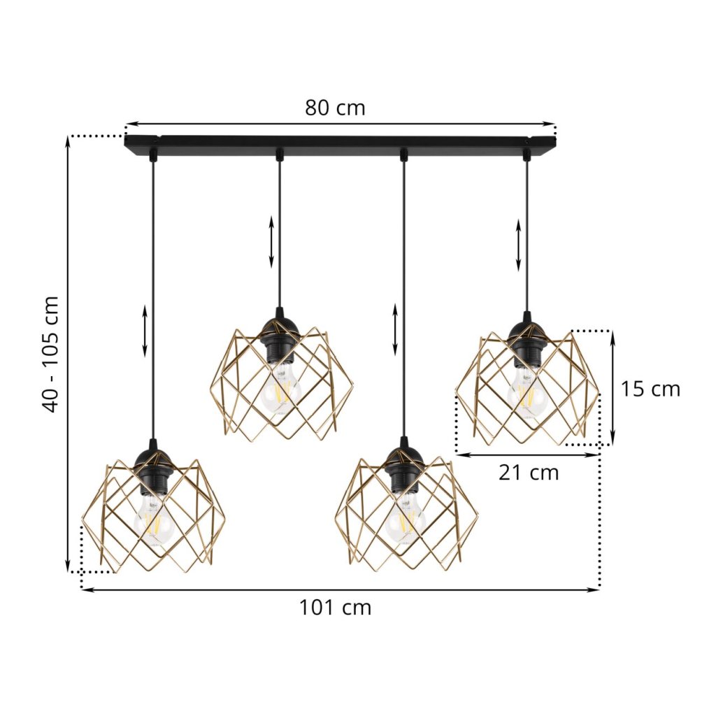 Závěsné svítidlo Stella, 4x zlaté drátěné stínítko