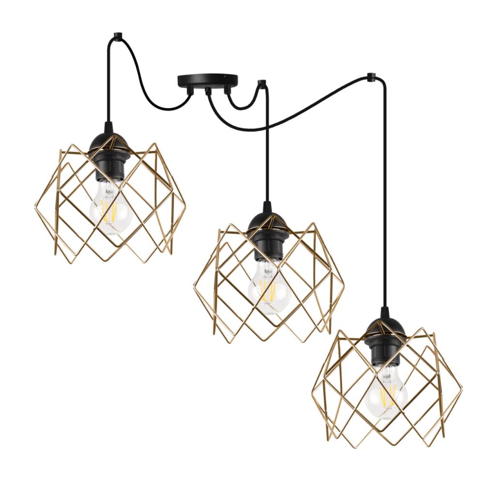 Závěsné svítidlo Stella Spider, 3x zlaté drátěné stínítko