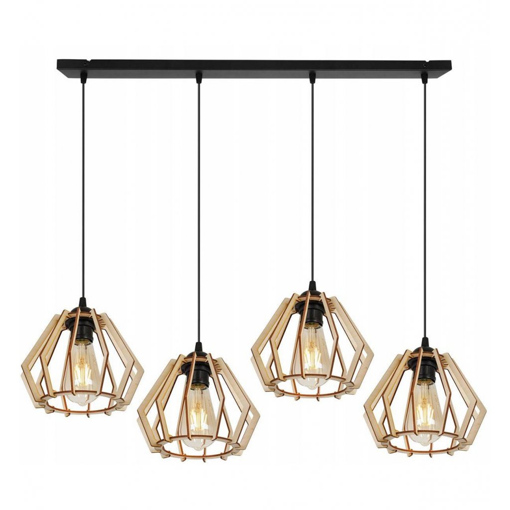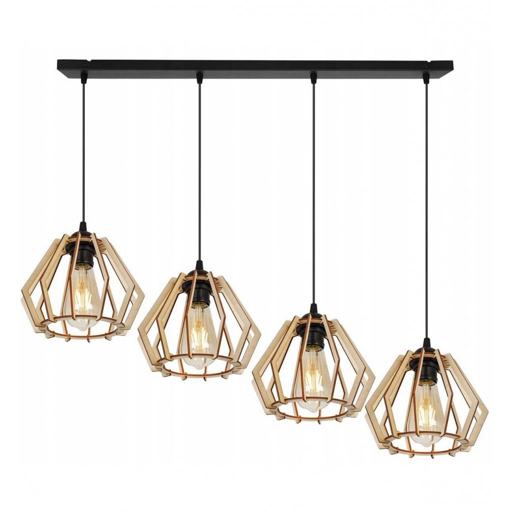 Závěsné svítidlo Timber, 4x dřevěné stínítko