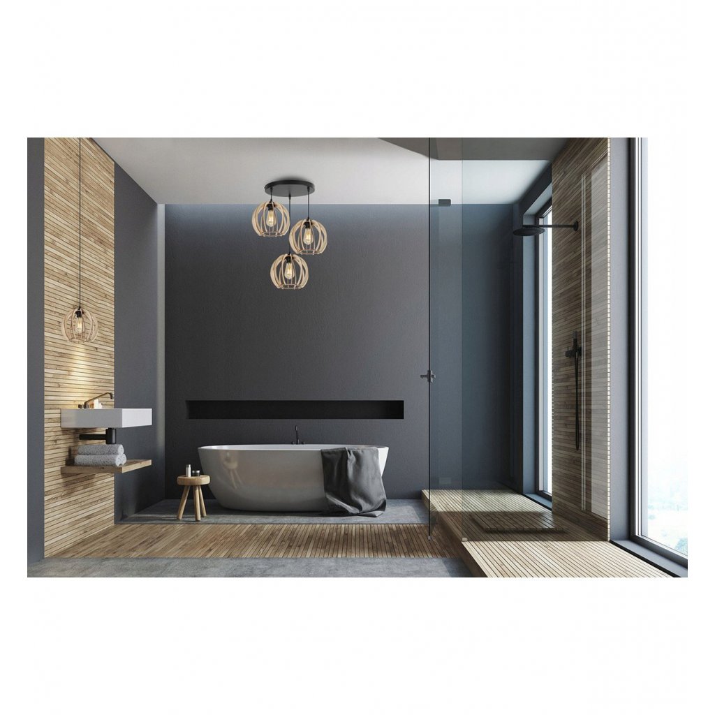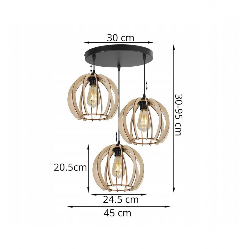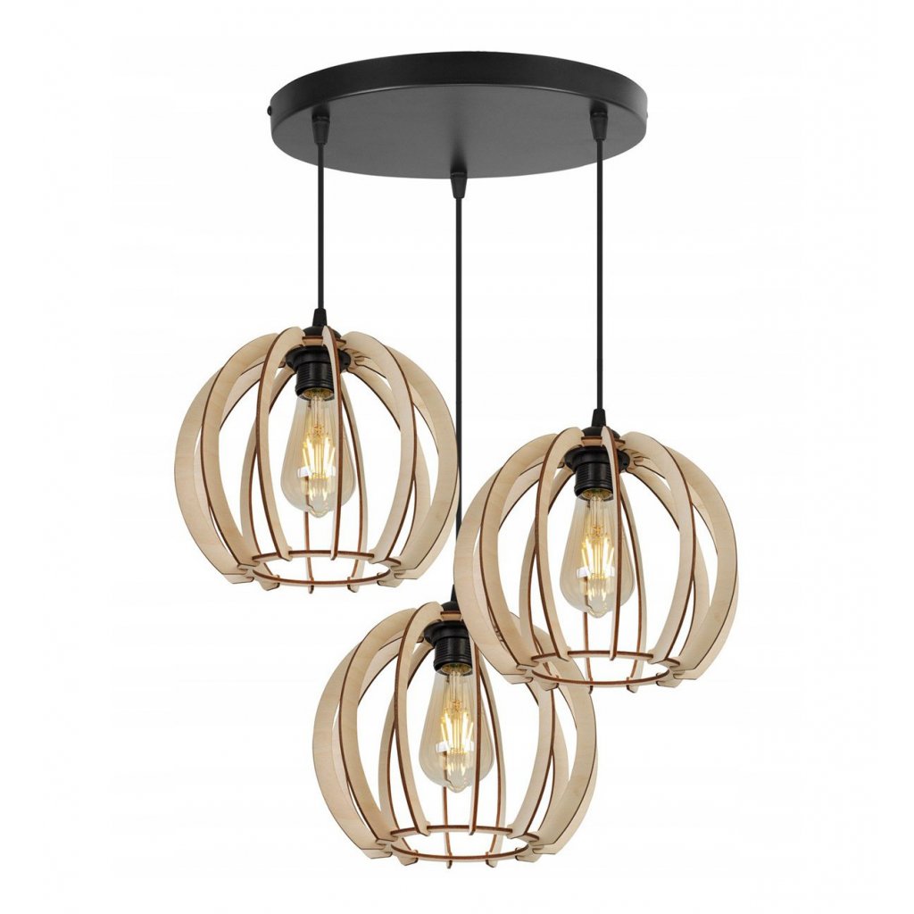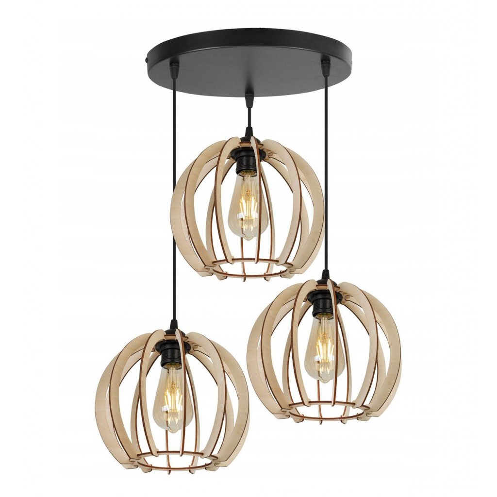 Závěsné svítidlo Timber 1, 3x dřevěné stínítko,