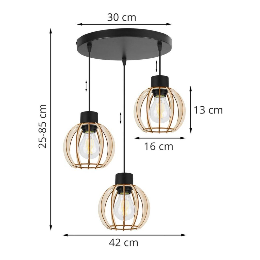 Závěsné svítidlo Timber 8, 3x dřevěné stínítko,