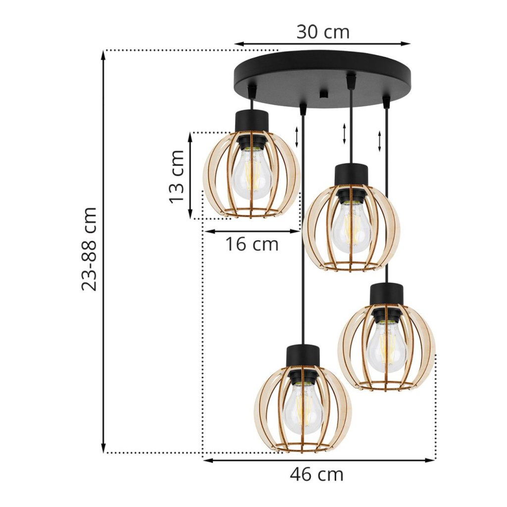 Závěsné svítidlo Timber 8, 4x dřevěné stínítko,