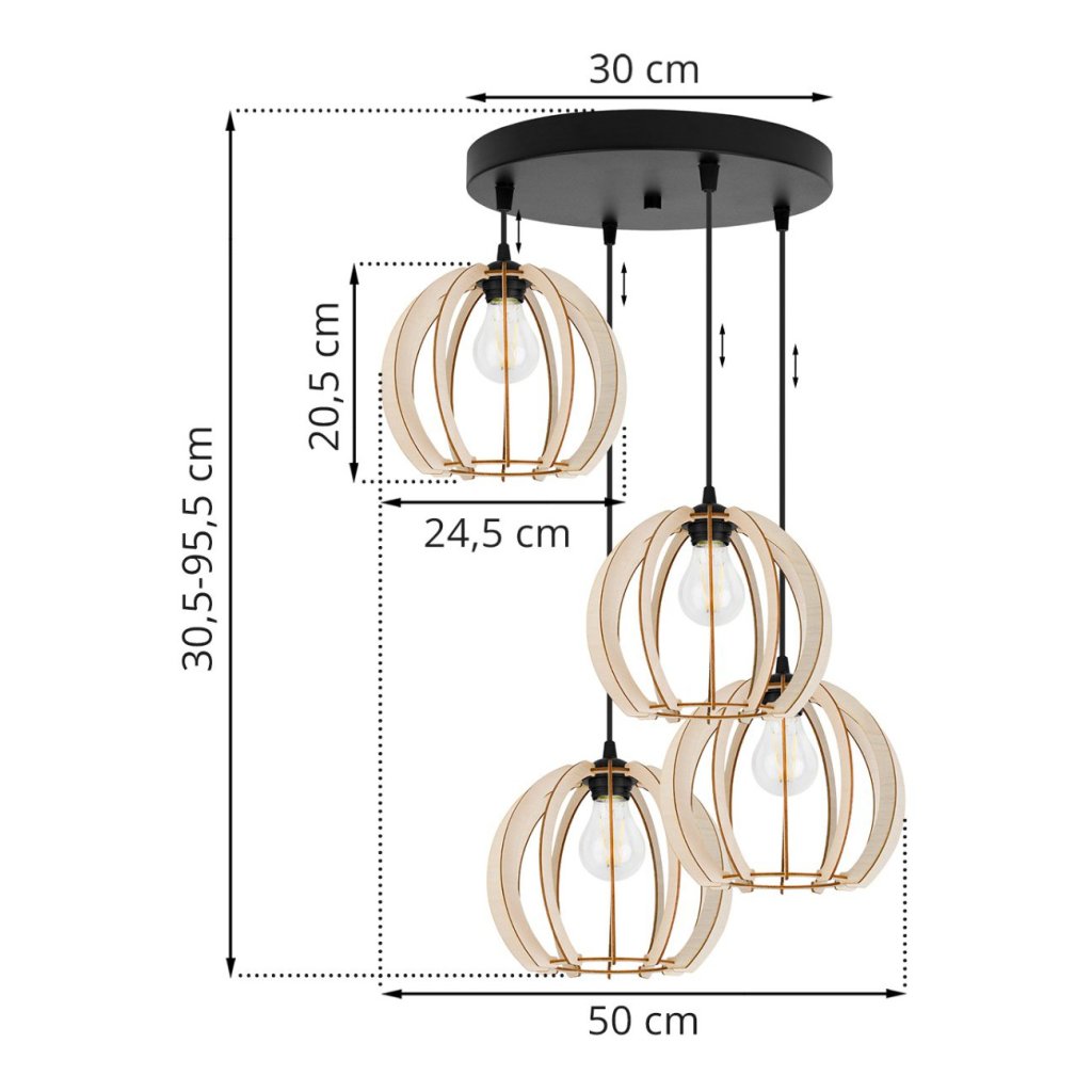 Závěsné svítidlo Timber 9, 4x dřevěné stínítko,