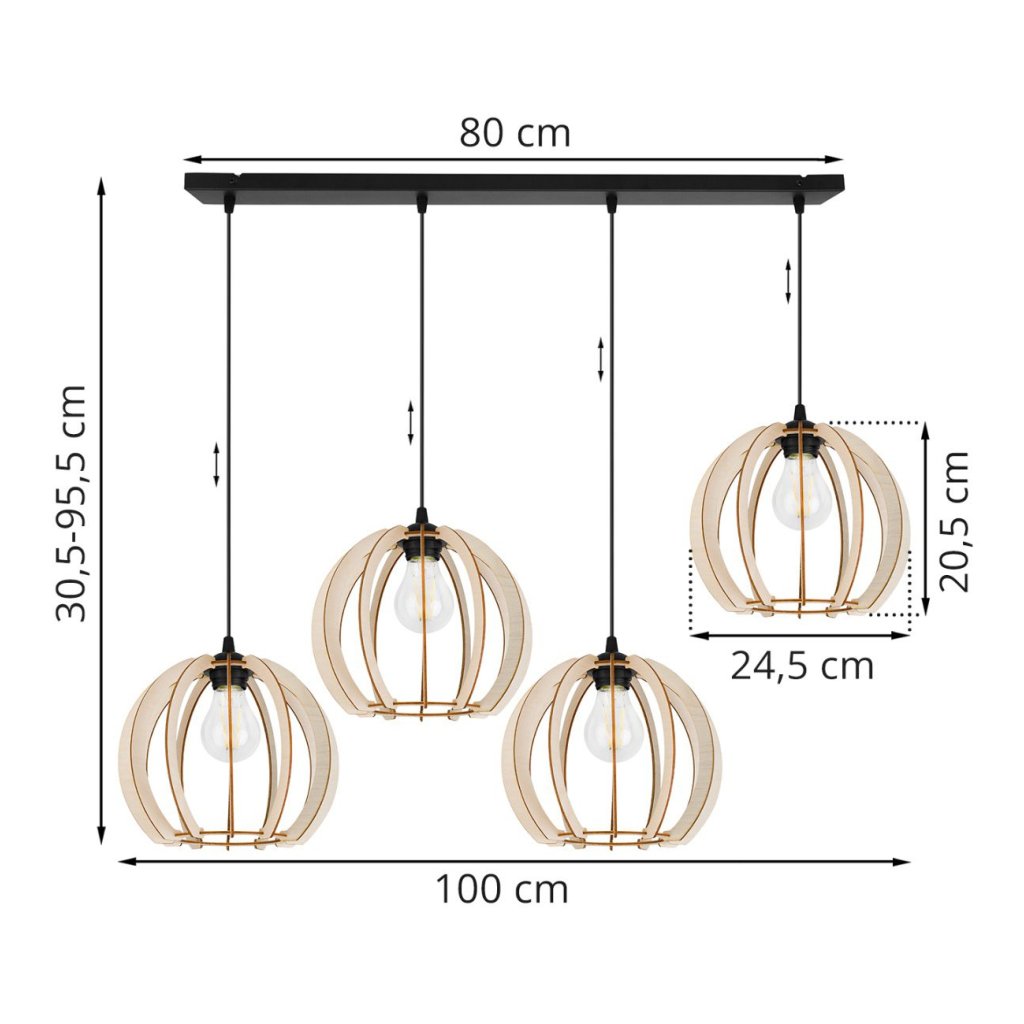 Závěsné svítidlo Timber 9, 4x dřevěné stínítko
