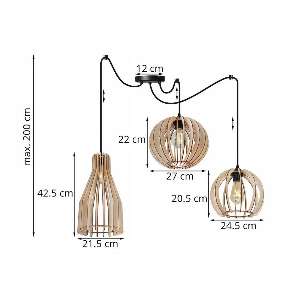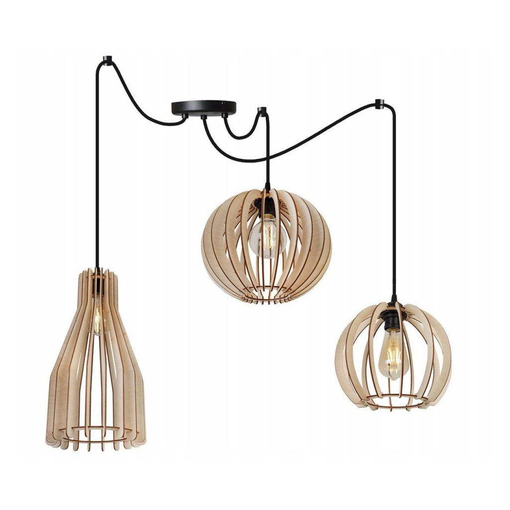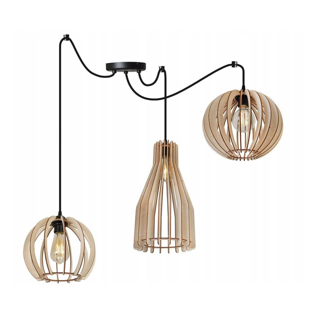 Závěsné svítidlo Timber Spider, 3x dřevěné stínítko (mix 3 tvarů)